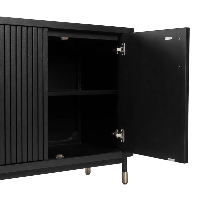 The Boston Buffet from our newly launched Boston Range is where glamorous sophistication meets modern functionality. Distinguished by its elegantly fluted door fronts and polished brass handles, it brings an air of refined luxury to any interior. Generous internal shelving ensures effortless storage for dining essentials, while its slender legs with brass-capped feet lend a graceful, lightweight silhouette. Available in White, Black, and Natural Oak finishes, the Boston Buffet is as versatile as it is beautiful -perfect for elevating dining rooms, entryways, or living spaces with contemporary style and enduring appeal.