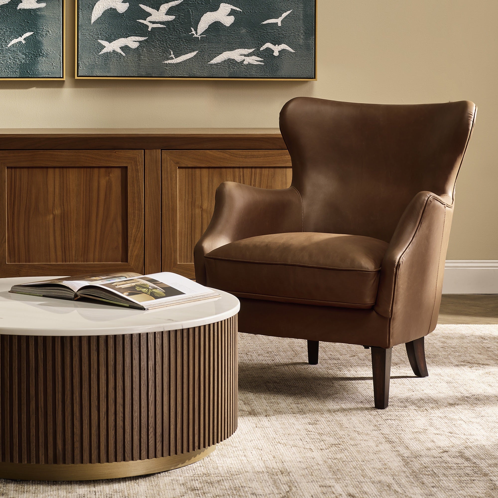 Elevate your living space with the Como Round Marble Coffee Table in medium, where timeless materials meet modern design. A smooth Sivec marble top, rich with natural veining, rests on a walnut-finished oak base with fluted detailing, all grounded by a sleek brushed gold plinth for a subtle touch of glam. This beautiful marble coffee table blends durability and style, making it a versatile choice for both contemporary and classic interiors.