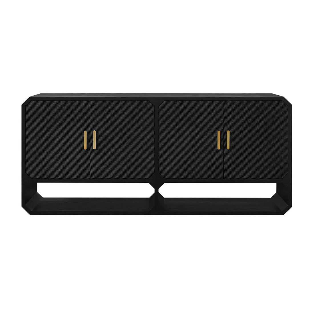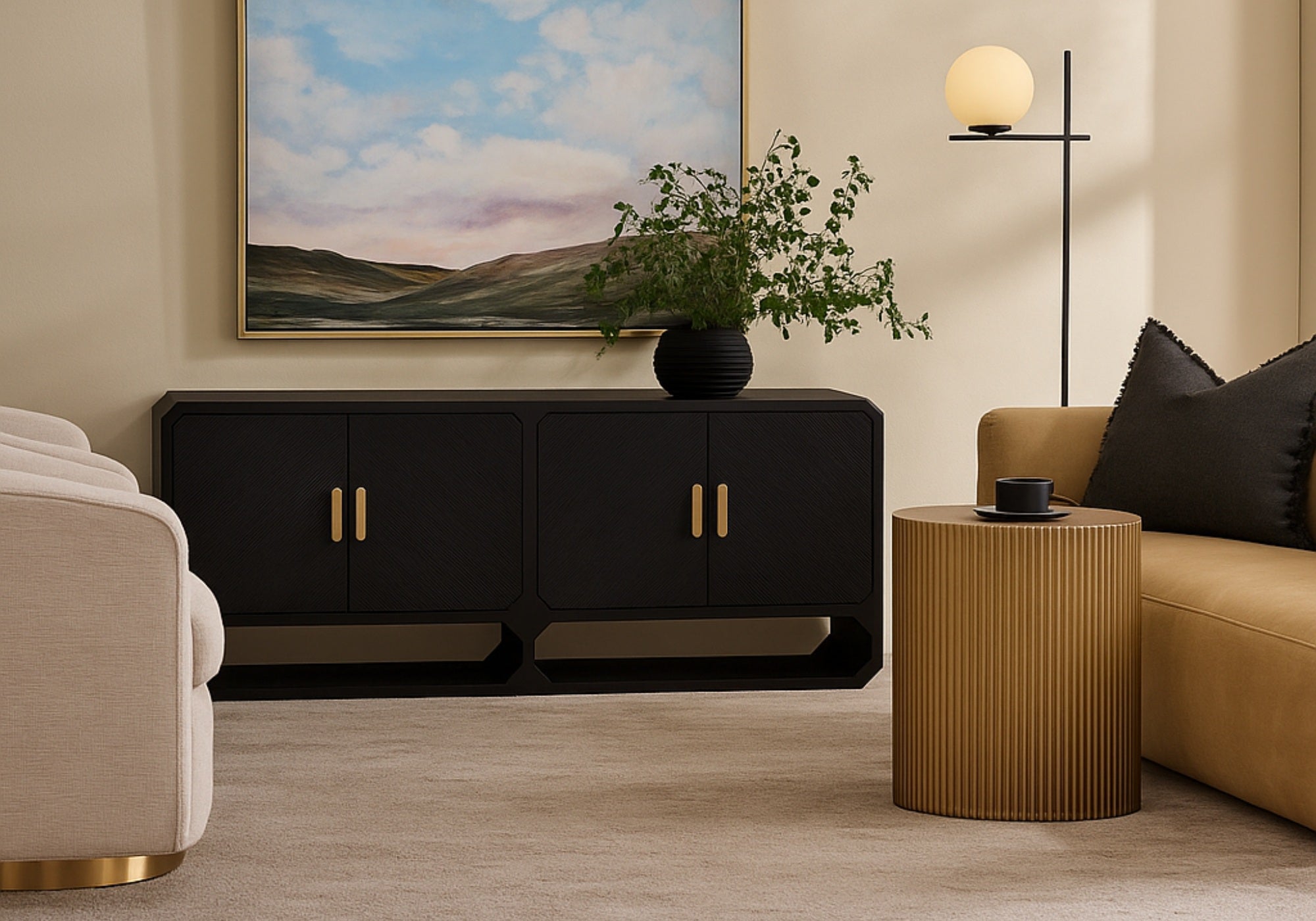 Dramatic. Architectural. Bold. The Cooper Buffet in black is pure statement. With diagonal fluted doors, soft-close drawers, and beautiful edges, each piece balances craftsmanship with modern edge. It's brass handles, angular base and soft edges gives it a sculptural stance worthy of couture interiors. Designed for storage, styled for impact, it’s as functional as it is unapologetically glamorous. Also available in Black or White.