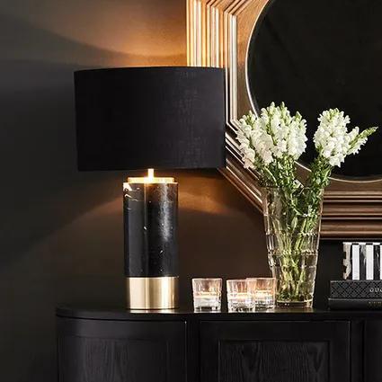 Compliment your home interior styling with the beautifully chic Black Marble Paola Table Lamp with gold base. A smart combination of black marble with glamorous gold trim accents give this lamp an art deco feel and make it a fantastic statement piece.