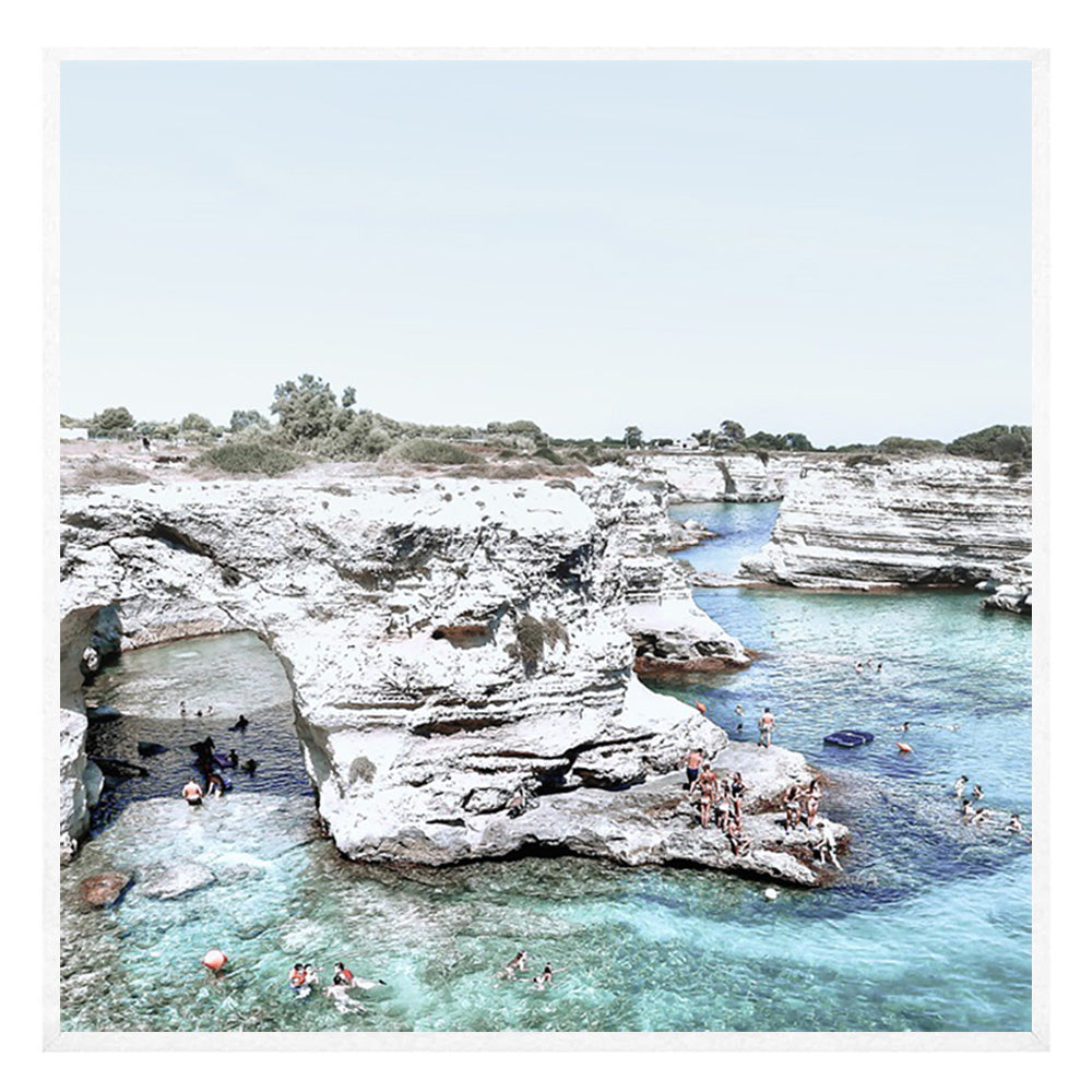 Immerse yourself in the seductive allure of 'Rock Pool Blue,' where crystalline waters meet striking natural rock formations. Effortlessly elegant, this piece captures the essence of carefree sophistication, transforming your space into a haven of bold, tranquil luxury.