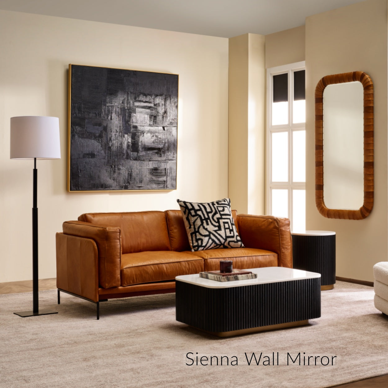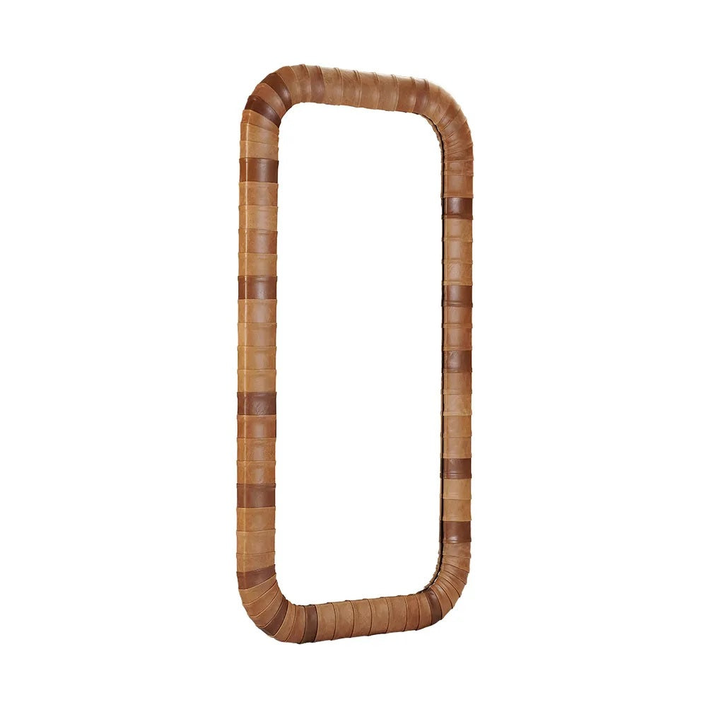This stunning Athens wall mirror features a bevelled edge and top grain leather frame, blending luxury and functionality. Its curved rectangular shape enhances bedrooms, living rooms, or entryways with warmth and designer appeal. Perfect for leaning or wall mounting, this statement floor mirror adds depth, light, and timeless elegance to any space.