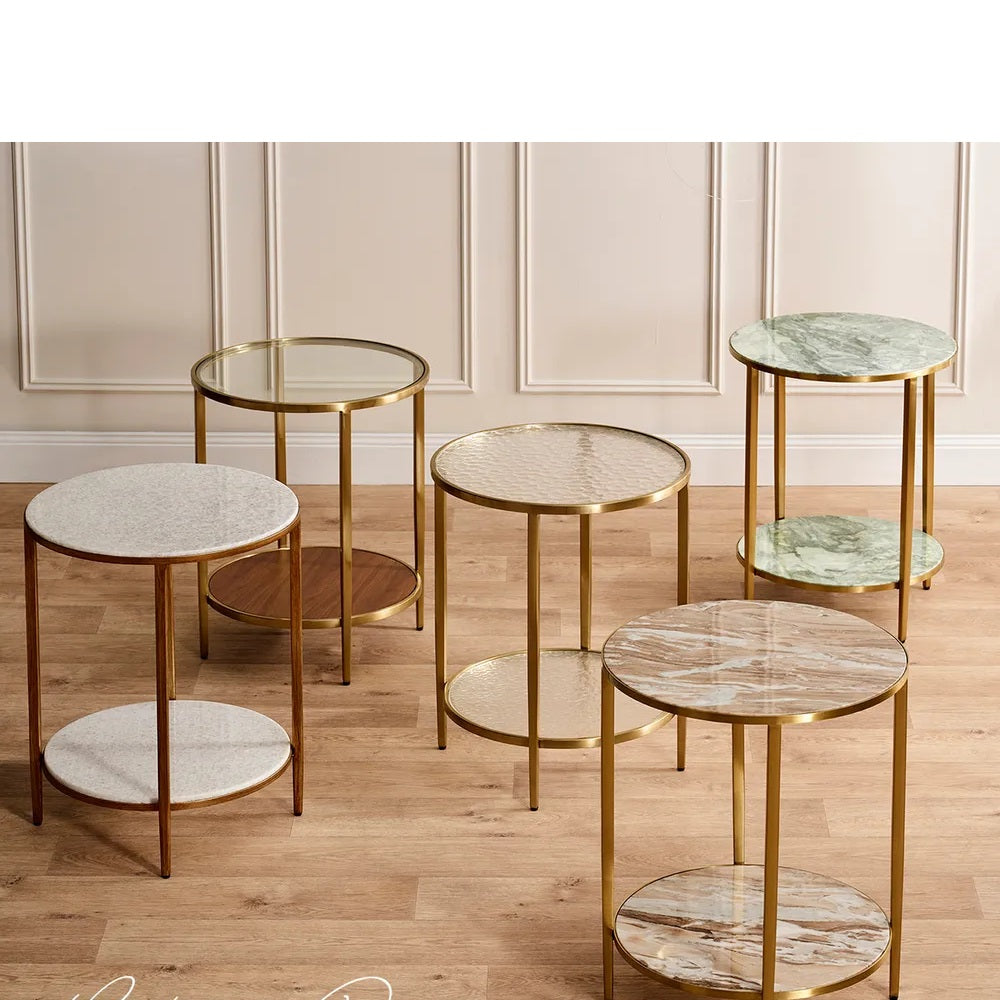 The Chloe Dusty Jade Marble Side Table may be compact, but it makes a bold statement of refined luxury. Featuring a polished matte Dusty Jade marble top with exquisite natural veining in shades of green, grey, and charcoal, its organic beauty is enhanced by a slender brushed gold stainless steel frame. Perfect as a living room side table or an elegant bedside table, this versatile piece adds instant sophistication to any space. Arriving fully assembled for effortless styling, it shines both as a standalone feature or when paired with the matching marble coffee and console tables from the Cloe collection.