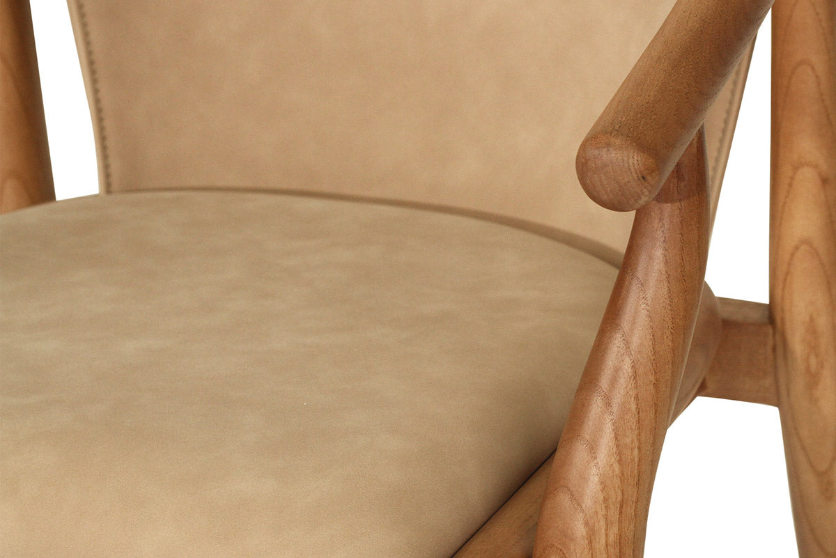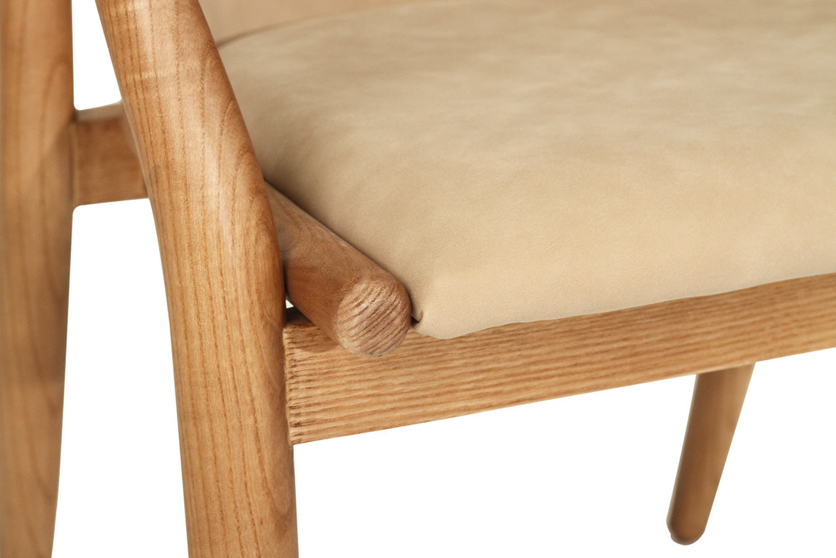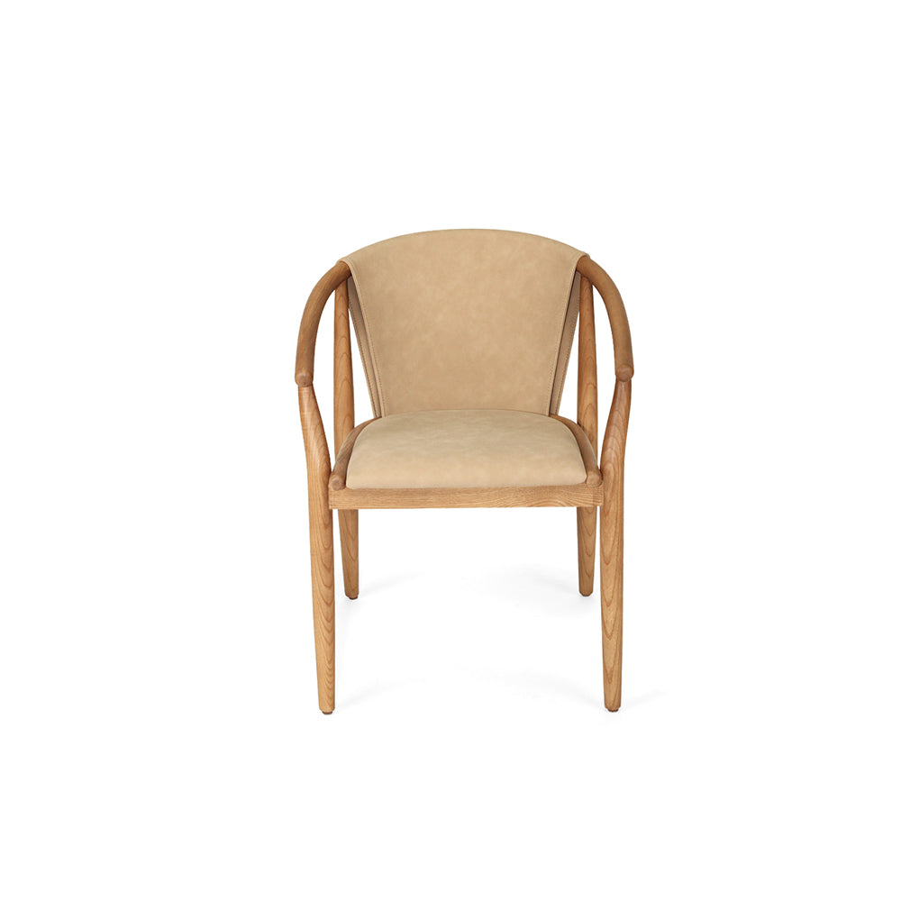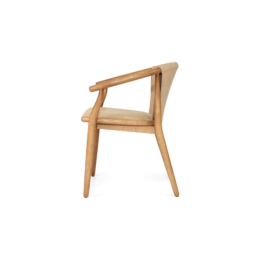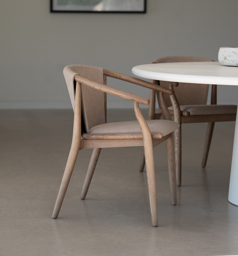 Bring timeless elegance to the table with the Lira Dining Chair. Crafted in a solid warm Caramel Ash wood, its sculpted frame pairs beautifully with its fixed seat and back, upholstered in smooth Light Khaki. A seamless blend of natural charm and refined comfort, perfect for classic or modern interiors.