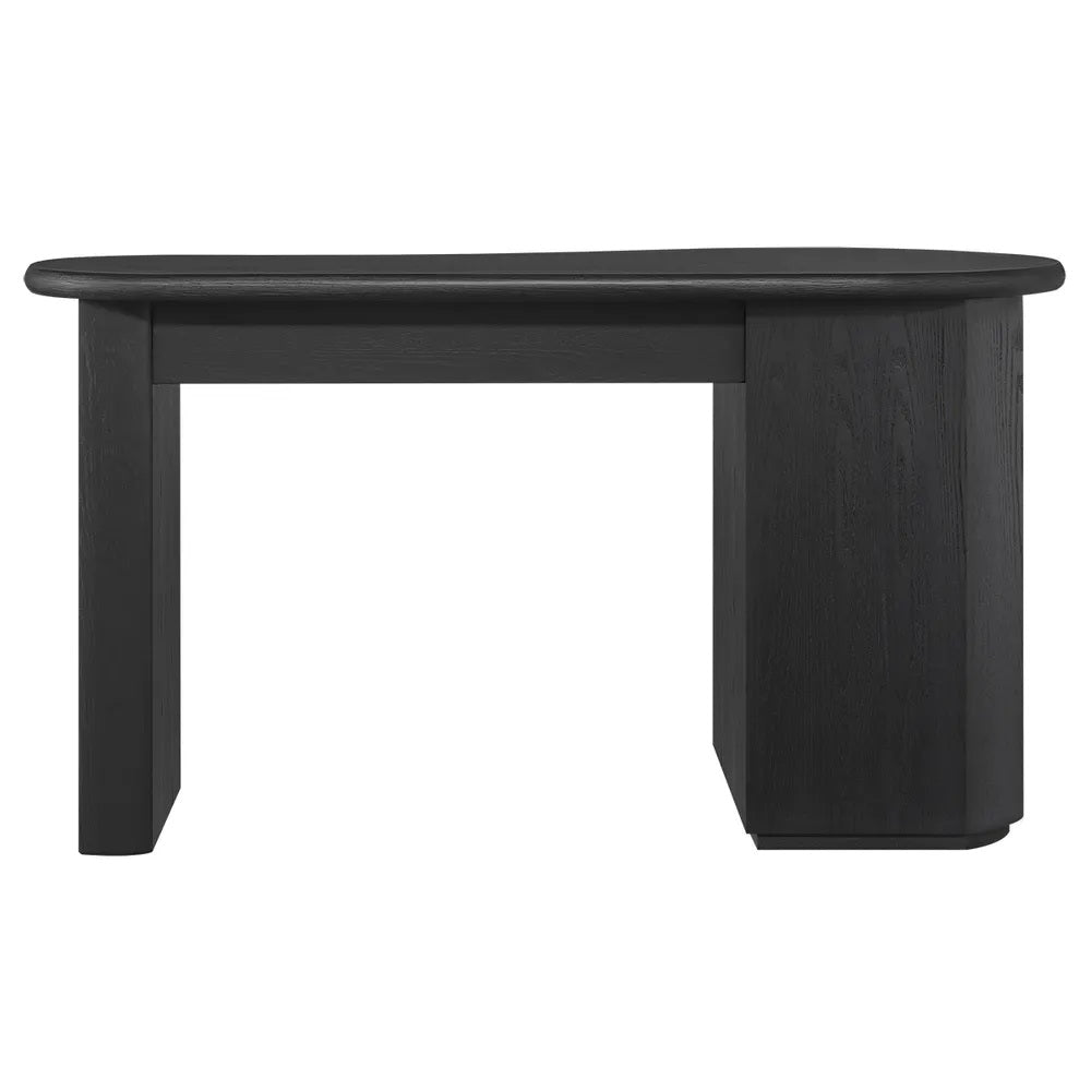 The Milos Desk combines sleek modern design with timeless craftsmanship, creating a versatile piece for contemporary interiors. Its gently curved silhouette and rounded edges bring softness to the structure, while a natural ashwood veneer, available in warm Oak, soft Bone Ivory, or bold Black, delivers a refined finish. Three spacious drawers on the left and a slim centre drawer provide practical storage, while subtle brushed brass pulls add just the right touch of sophistication.