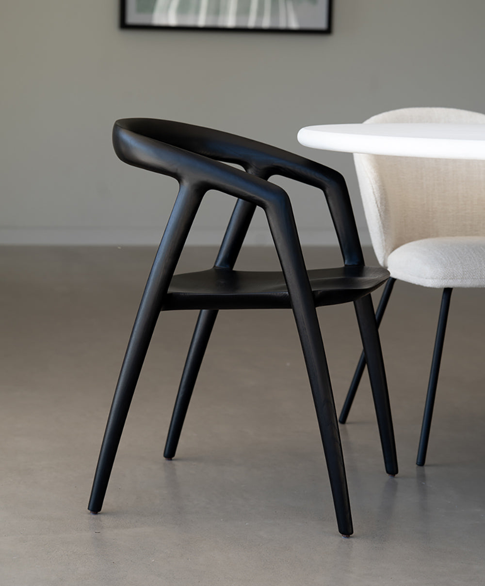 With its sculptural silhouette and timeless simplicity, the Sable Dining Chair in black is a tribute to natural beauty and artisanal craftsmanship. Meticulously made from solid ash wood with a stunning black finish, it brings warmth, texture, and quiet sophistication to any dining setting.