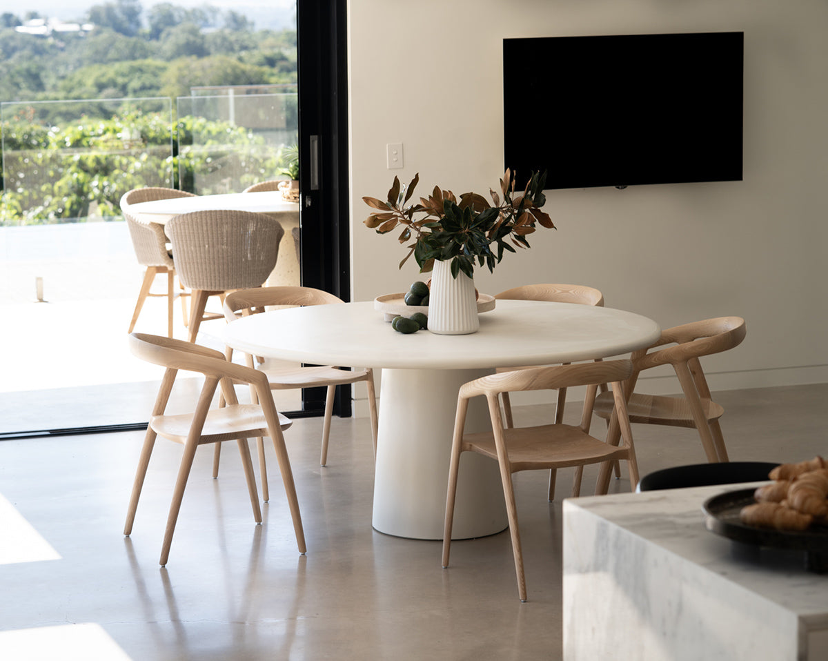 With its sculptural silhouette and timeless simplicity, the Sable Dining Chair in natural is a tribute to natural beauty and artisanal craftsmanship. Meticulously made from solid ash wood with a beautiful natural finish, it brings warmth, texture, and quiet sophistication to any dining setting.