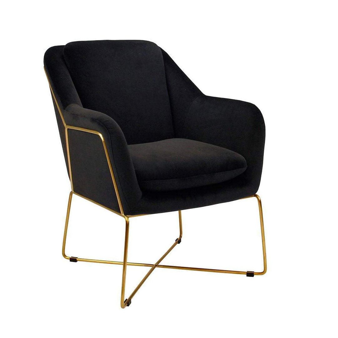 The sculptured black velvet design contrasts against a gleaming brushed golden base, adding a "wow" from every angle and yet is the ultimate place to perch yourself when it's time to relax.