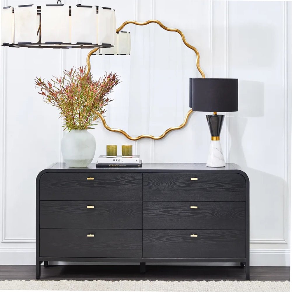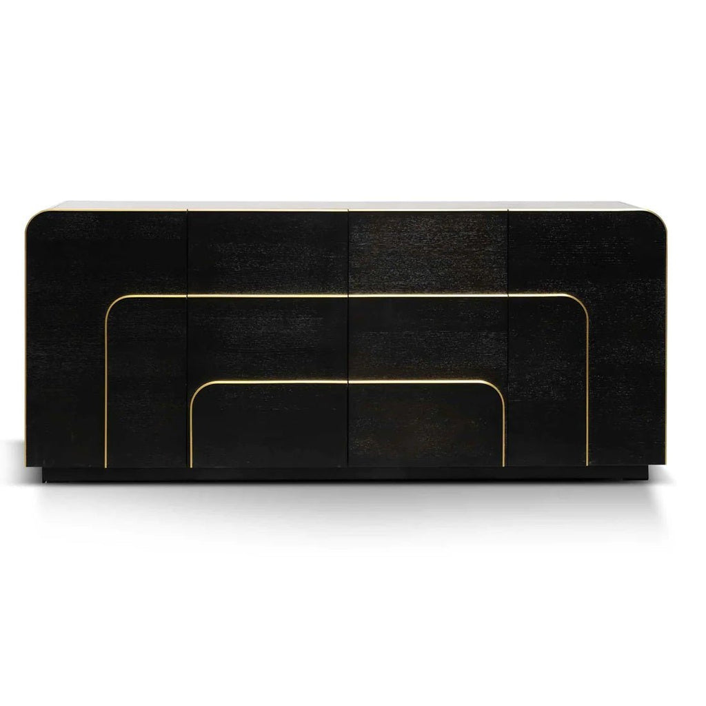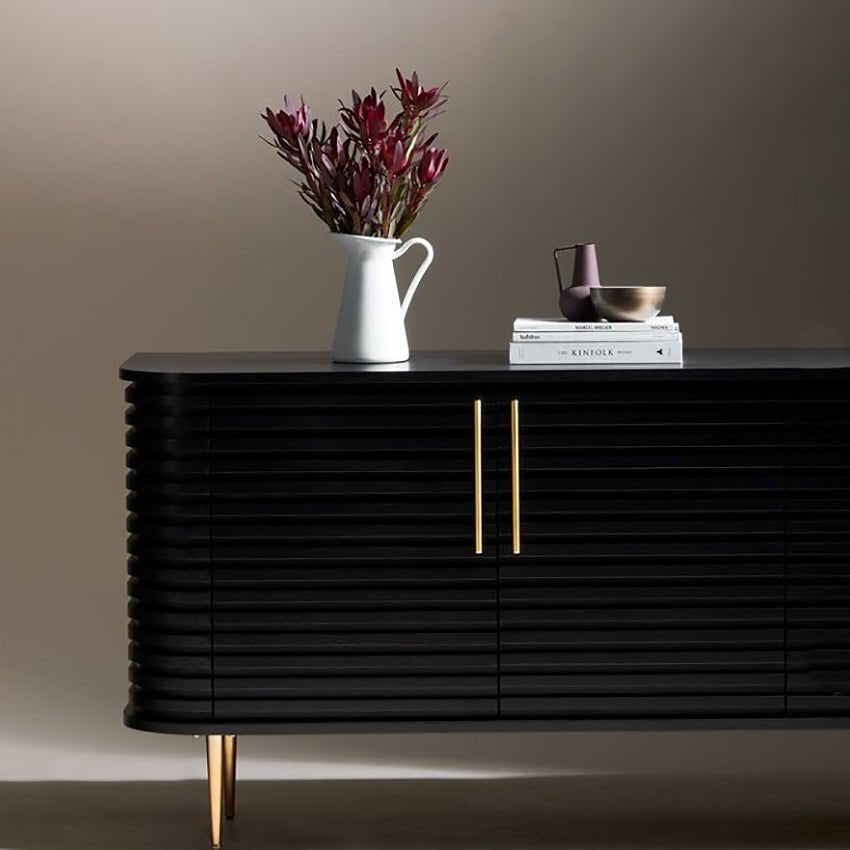 Elevate your living room with a black buffet, adding luxury and sophistication. Its elegant design offers both stylish décor display and practical storage, creating a striking focal point that blends form and function.
