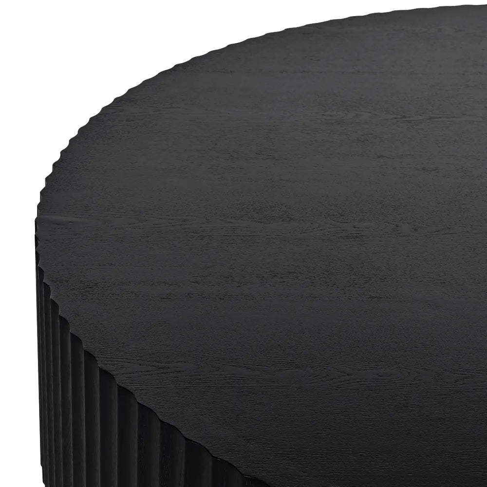 Elegant and quietly modern, the Langham Round Coffee Table in black speaks in whispers, not shouts. Soft curves, refined fluting, and subtle texture create effortless sophistication. A serene neutral designed to elevate modern living rooms with timeless restraint and understated grace.