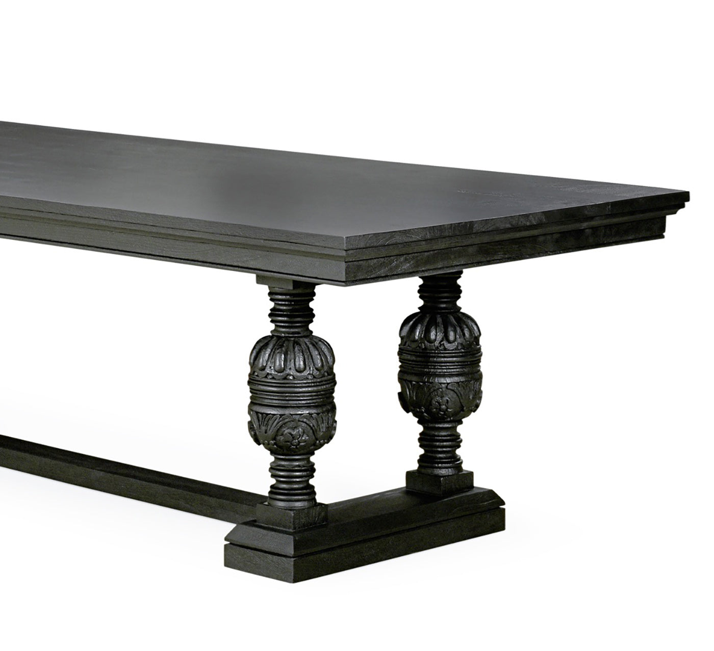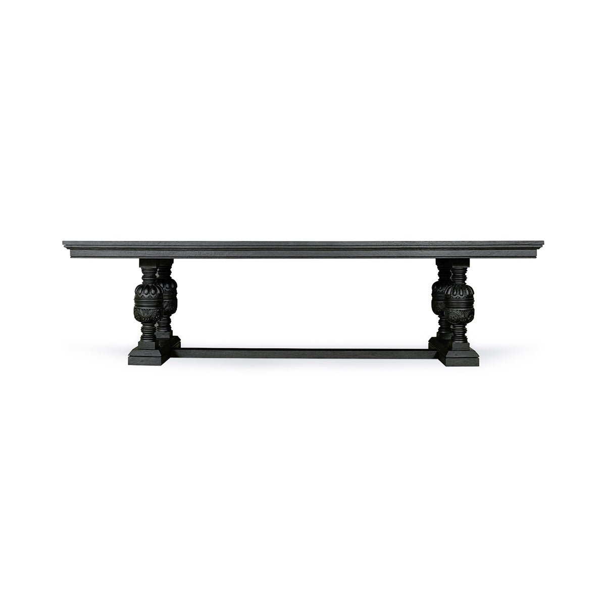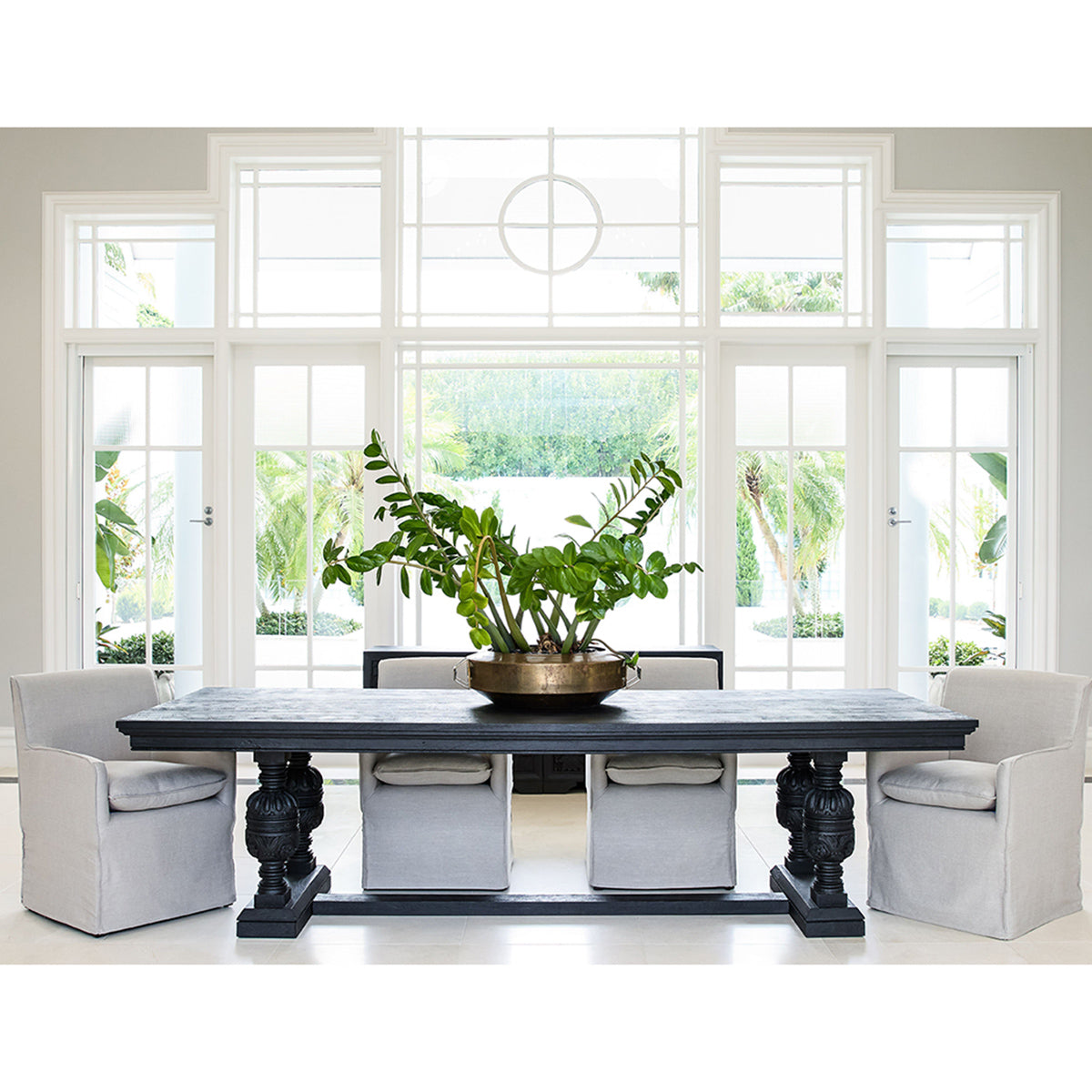 Crafted from solid old-growth mango wood and finished in our signature mud grey and black stain, the Santorini Dining Table brings sculptural beauty and timeless character to any space. Each piece is hand-carved, celebrating artisanal craftsmanship and natural variation.