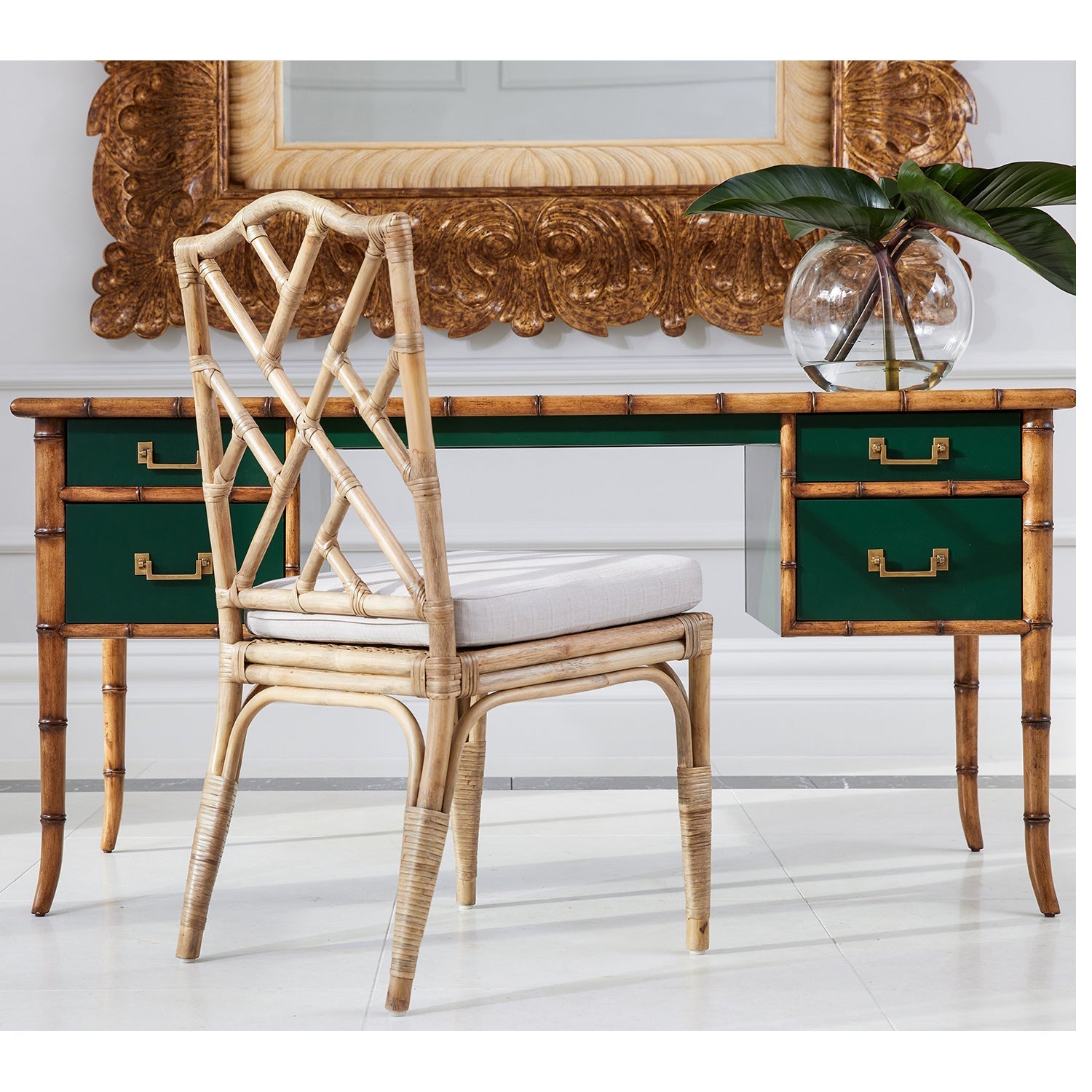The Bordeaux Desk is a stunning piece of furniture that draws inspiration from the iconic English faux bamboo designs. Every detail of this exquisite desk reflects the charm and sophistication of classic English aesthetics, adding a touch of refined luxury to your space. Crafted with meticulous attention to detail, the Bordeaux range showcases the enduring beauty of solid American oak, bringing nature's richness into your home.