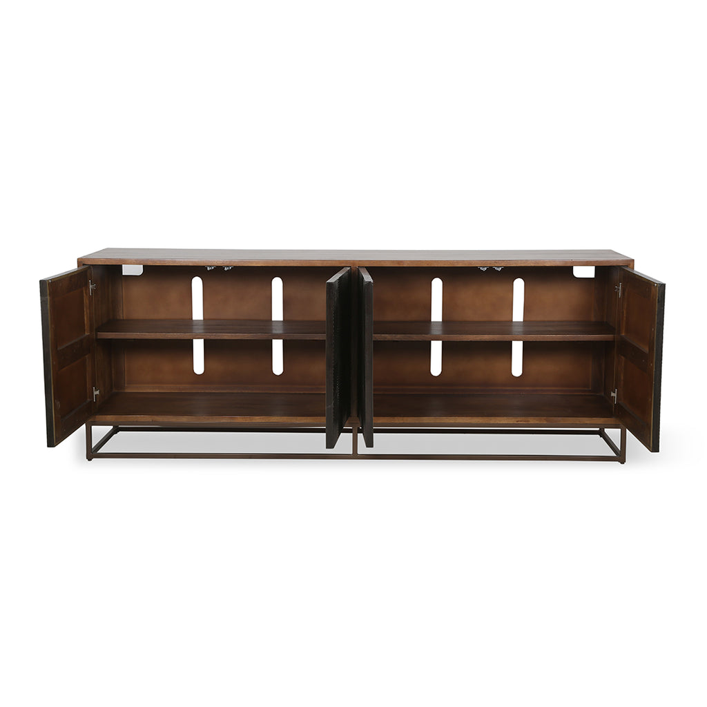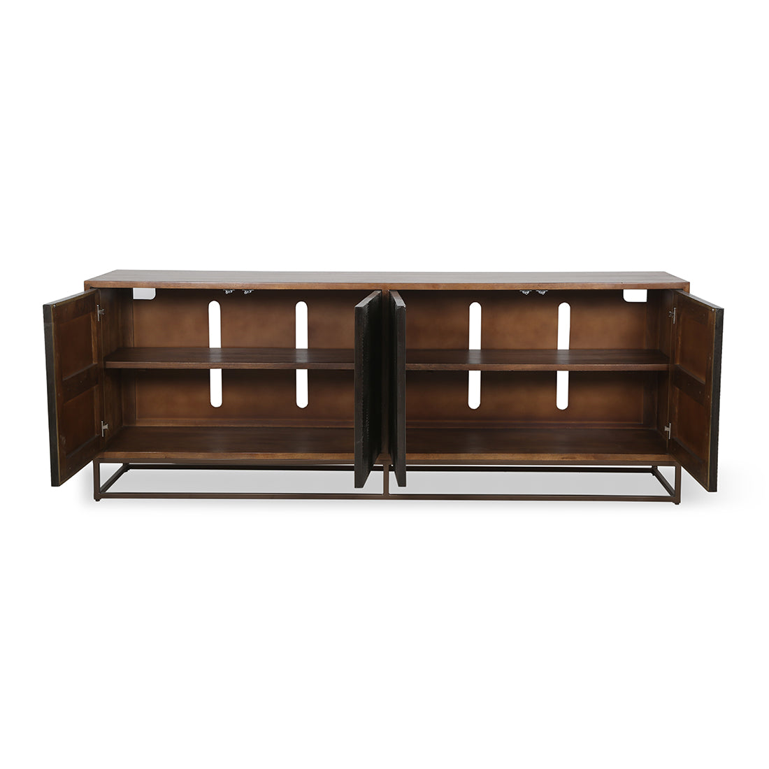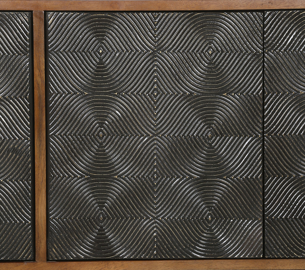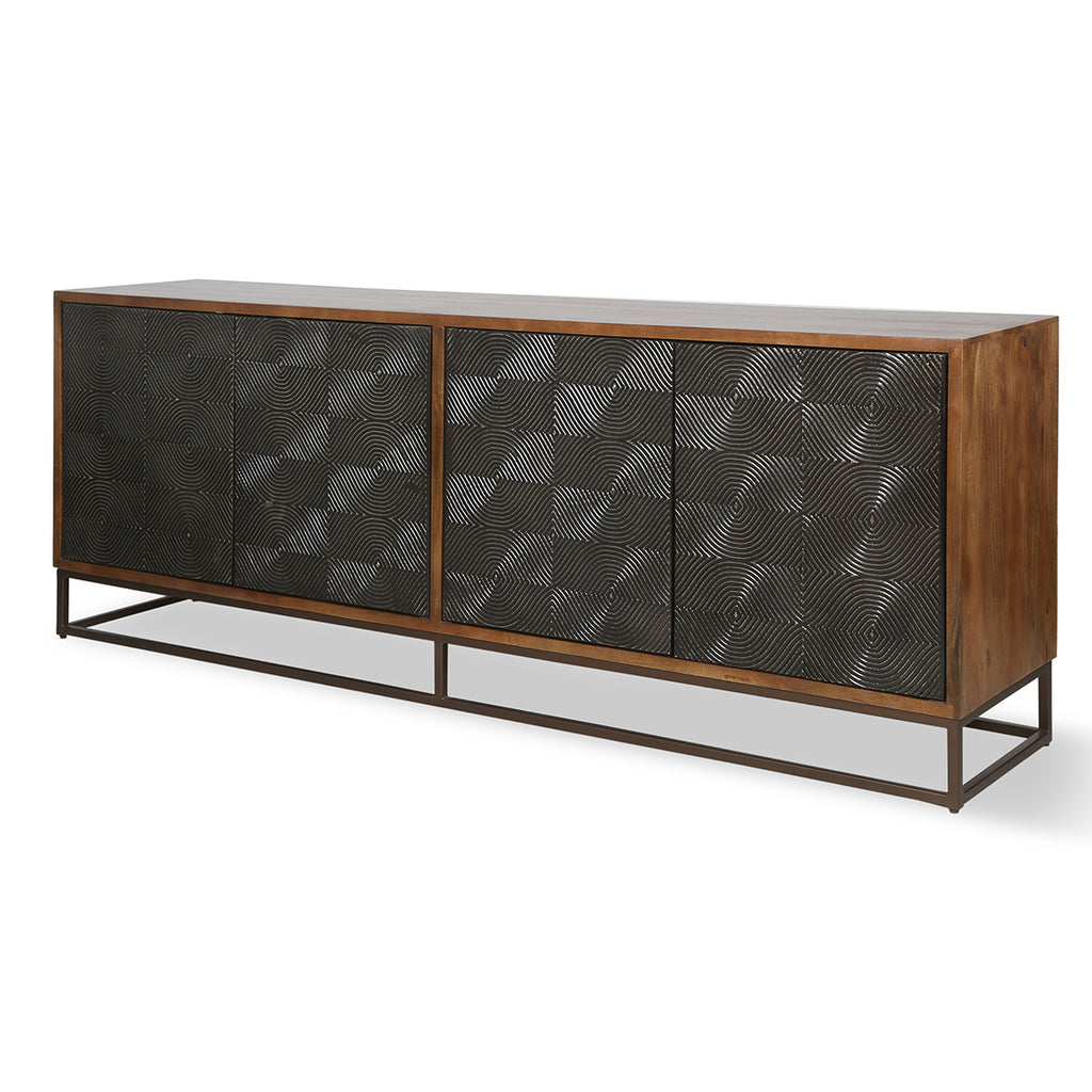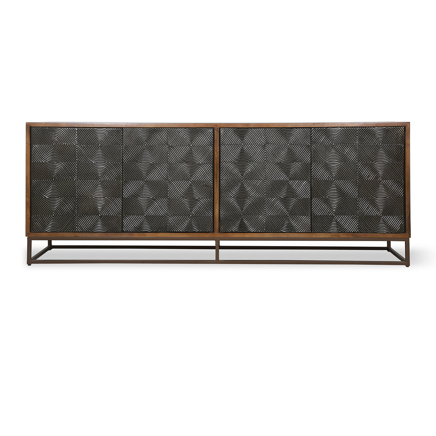 Resting on sleek zinc-finished metal legs, this buffet offers a contemporary edge while maintaining its timeless appeal. Perfect for dining rooms, living spaces, or entryways, this buffet not only provides ample storage but also serves as a captivating focal point for any refined interior.