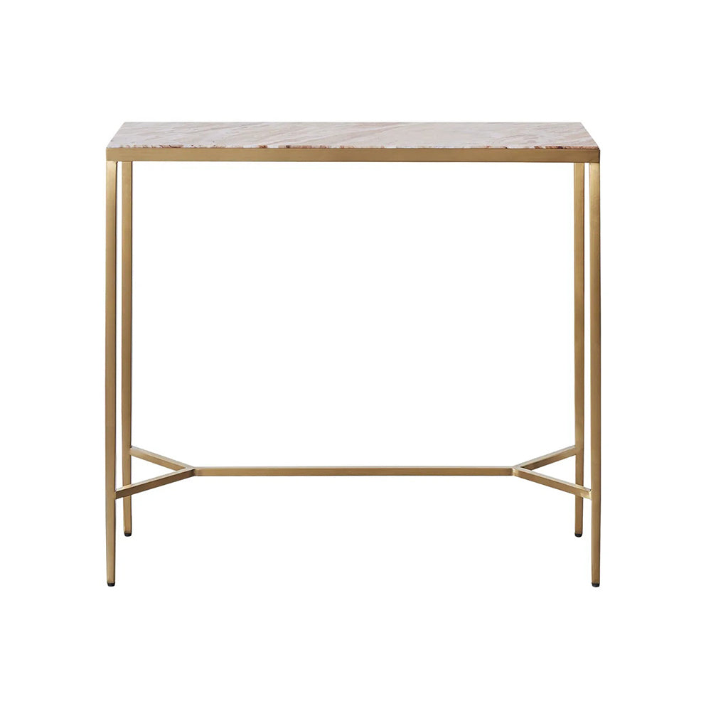 Grace your home with the quiet elegance of the Chloe Pink Marble Console Table in Gold. With its softly veined matte pink marble top and slim brushed gold stainless steel frame, this piece exudes refined sophistication. Designed to elevate hallways, entryways, or living rooms, its clean lines and airy profile offer timeless charm without overwhelming the space. Available in two versatile sizes and requiring no assembly, it’s a ready-to-style statement of effortless luxury.