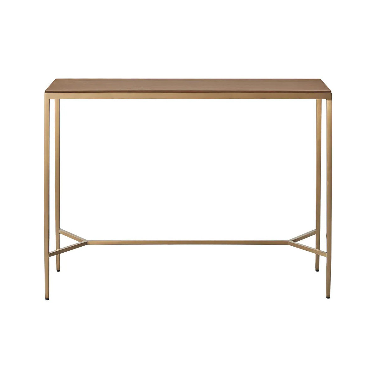 The Cloe Timber Large Console Table is a sophisticated fusion of timeless craftsmanship and contemporary design, an essential for interiors that demand both elegance and edge. Showcasing a beautifully grained walnut veneer top set upon a bold brushed gold stainless steel frame, this piece celebrates the striking interplay between natural warmth and metallic luxe.