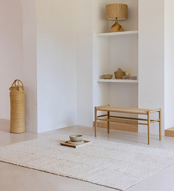 Elevate your space with the timeless elegance of the Brink & Campman Craft Fundament Wool White Rug. Handcrafted with meticulous artistry, each piece is a unique creation, celebrating the beauty of natural irregularities. Featuring bold, monolithic shapes in undyed, hand spun wool seamlessly paired with earthy jute, this rug creates a striking statement of understated luxury. Designed for versatility, the reversible design offers both functionality and enduring style, making it a monumental addition to any room and timeless appeal.