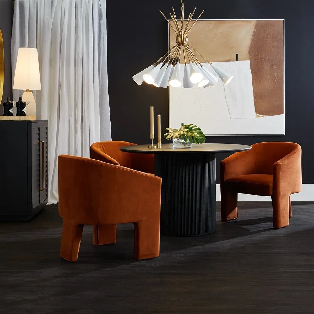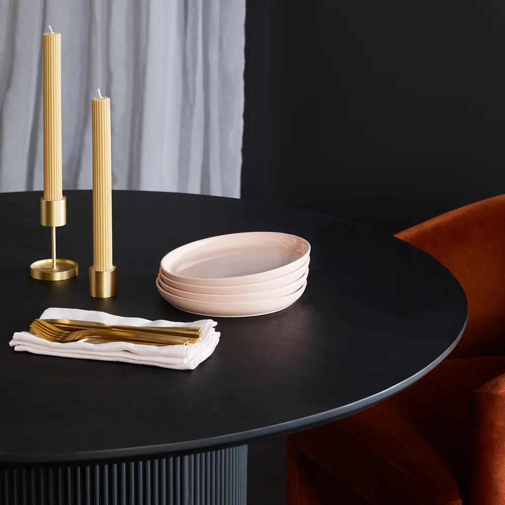With a luxuriously modern design, the Amalfi round dining table adds an unrivalled level of sophistication to your space. Crafted from smooth Ash veneer in a satin black finish and with its gorgeous ribbed base, this sleek piece will make any room stand out thanks to its captivating architectural form and effortless urban energy. Available in two sizes to comfortably seat 6 (1.5m) or 4 people (1.2m).