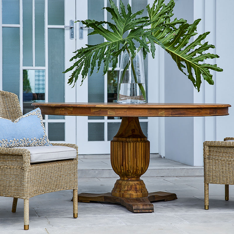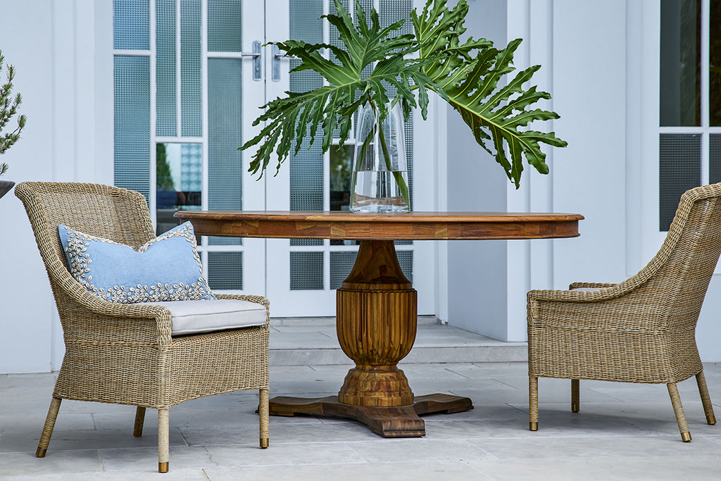 Experience outdoor dining at its finest with the Naples Round Outdoor Dining Table. Expertly crafted from premium, hand-carved Brazilian teak, this elegant table combines beauty and durability, making it a standout addition to any alfresco setting.