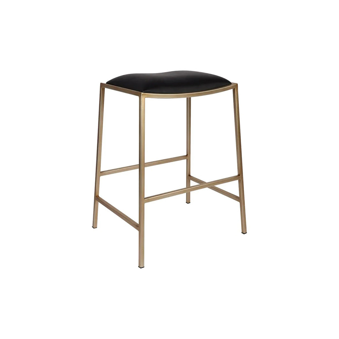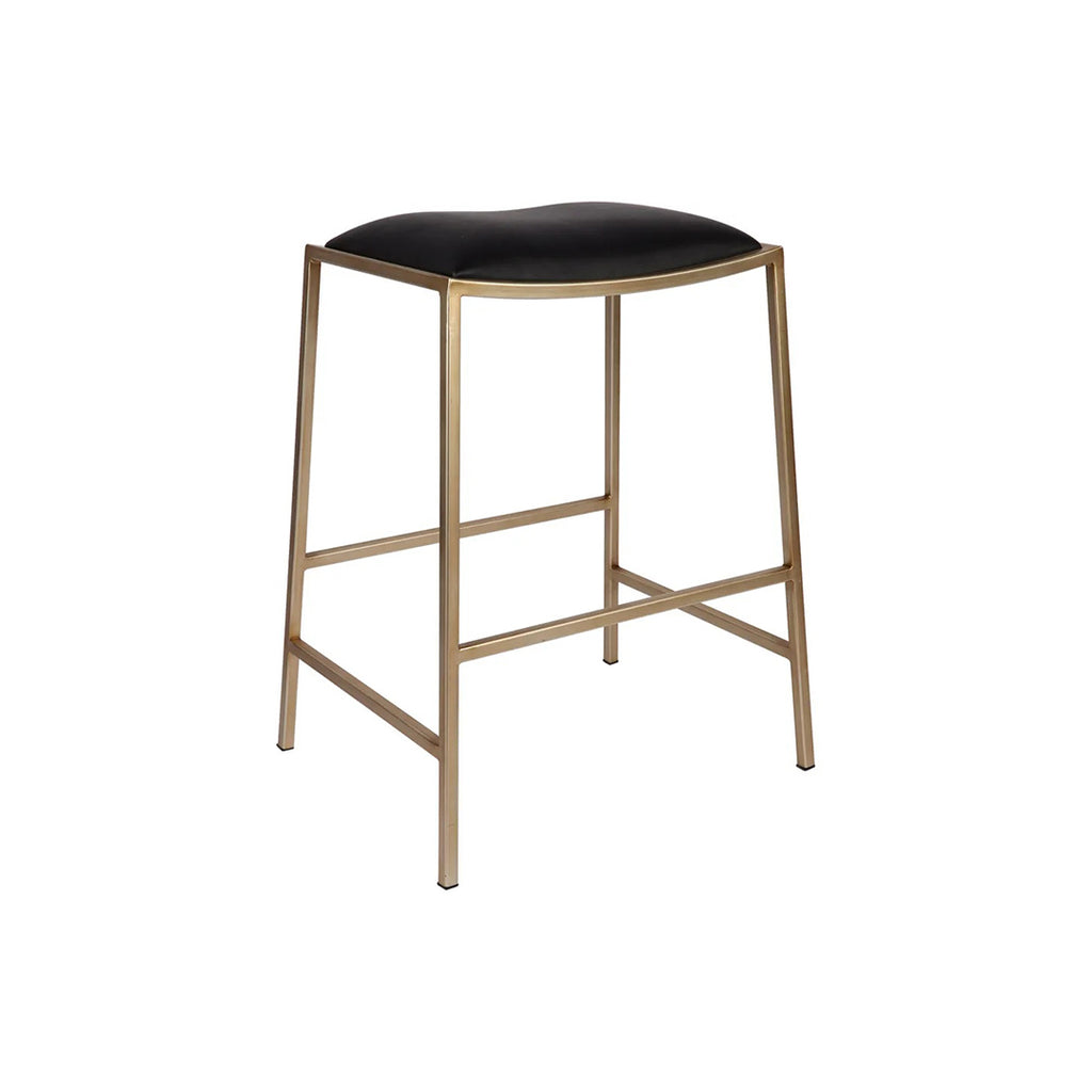 Embracing the effortless cool of mid-century flair mixed with an industrial edge, Kai's armless silhouette stands as a modern icon of style and ease. Crafted on a robust iron foundation, it boasts a sleek, enveloping seat dressed in fuss-free black vegan leather. Kai, in its golden glory, elevates your kitchen or bar space with a seat that marries dense, plush foam with undeniable chic, ensuring every moment at the counter is a luxurious affair.