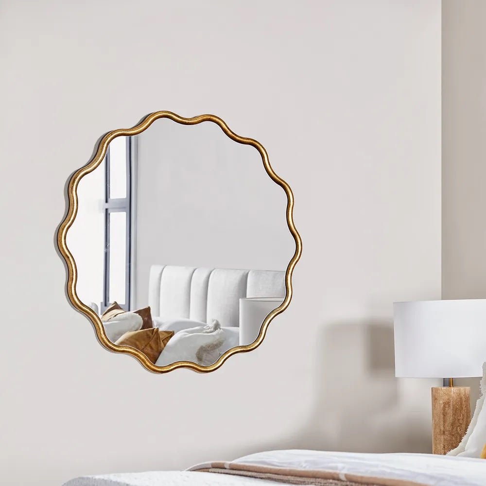 Embracing modern moods, the Ella round wall mirror features a distinctive wave design frame in an elegant hand rubbed antique gold finish. Adding a touch of contemporary luxe to interiors, the Ella round wall mirror is an undeniably versatile piece, created to blend exquisitely with a range of interior styles.