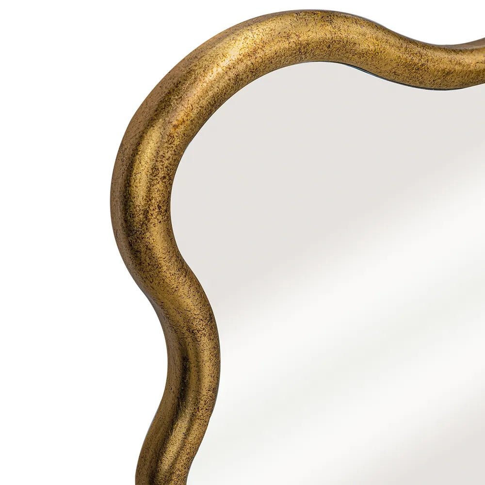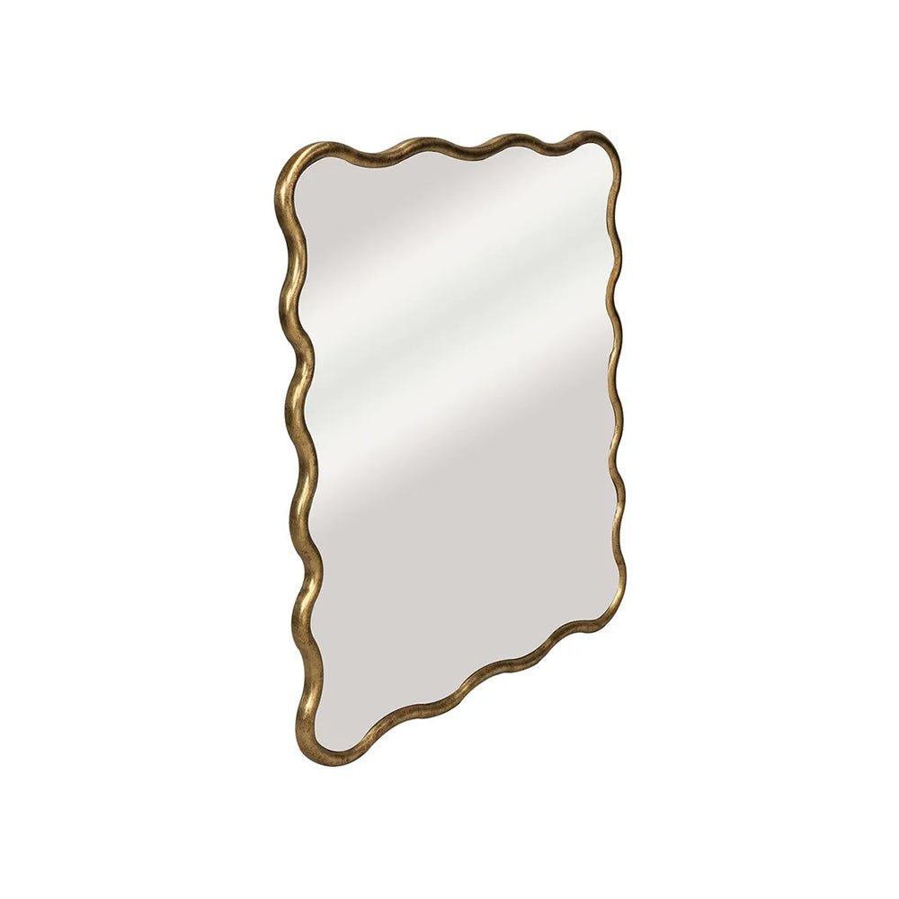 The Ella square wall mirror features a distinctive wave design frame in an elegant hand rubbed antique gold finish. Adding a touch of contemporary luxe to interiors, the Ella square wall mirror is an undeniably versatile piece, created to embellish a range of interior styles with a refreshingly modern design aesthetic.