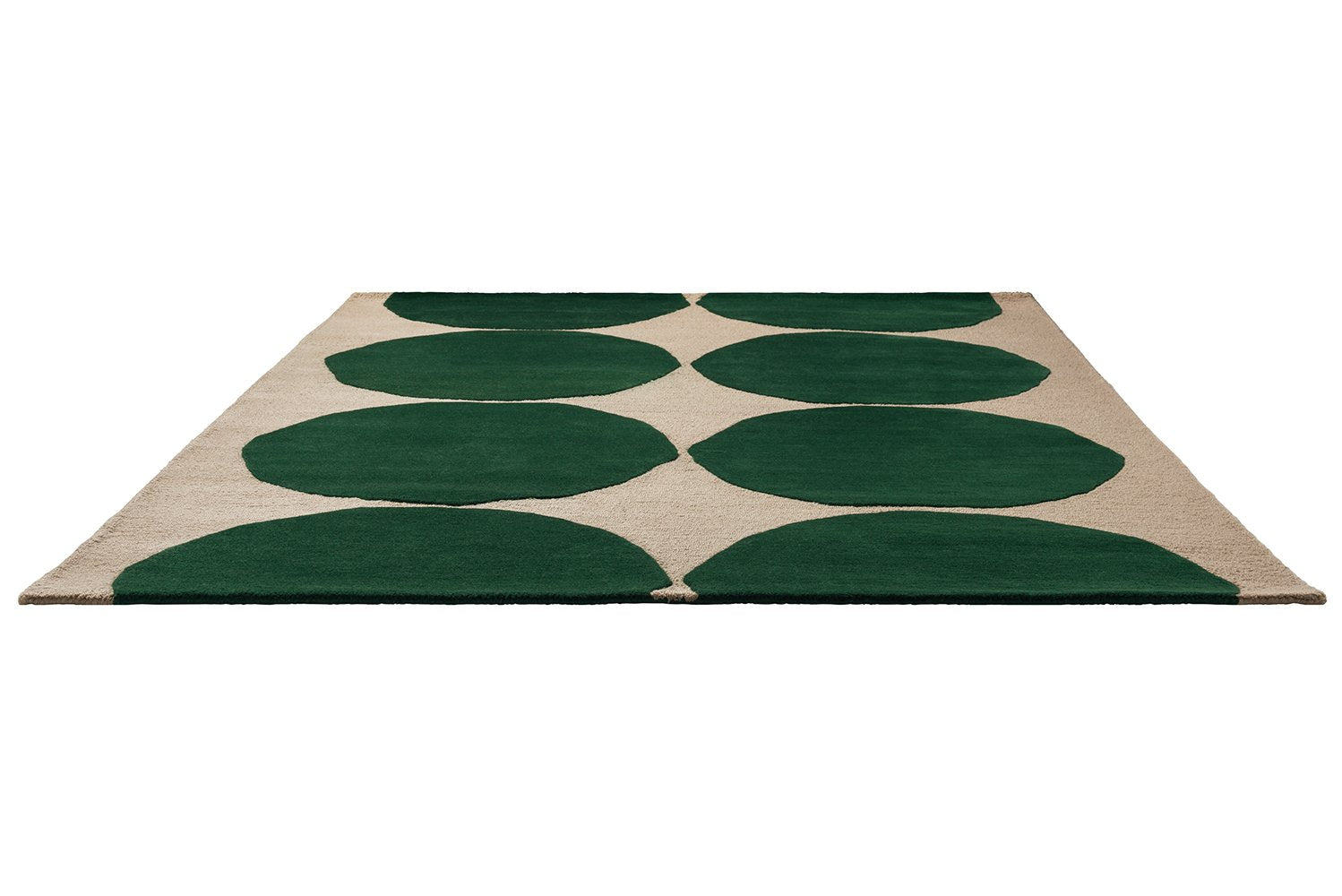 Introducing Isot Kivet, a beautiful rug showcasing Maija Isola’s legendary Kivet (stones) design. Inspired by stones meticulously cleared from the grounds of the designer’s atelier, this rug features green circles cut with scissors, adding an artistic and distinctive flair to any space. Made from 100% premium New Zealand wool, Isot Kivet comes in both neutral and vibrant colour options, providing versatile styling possibilities to elevate any interior.