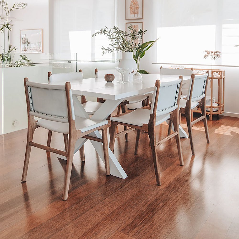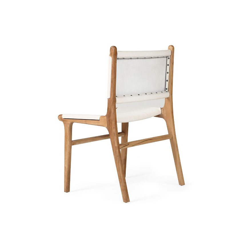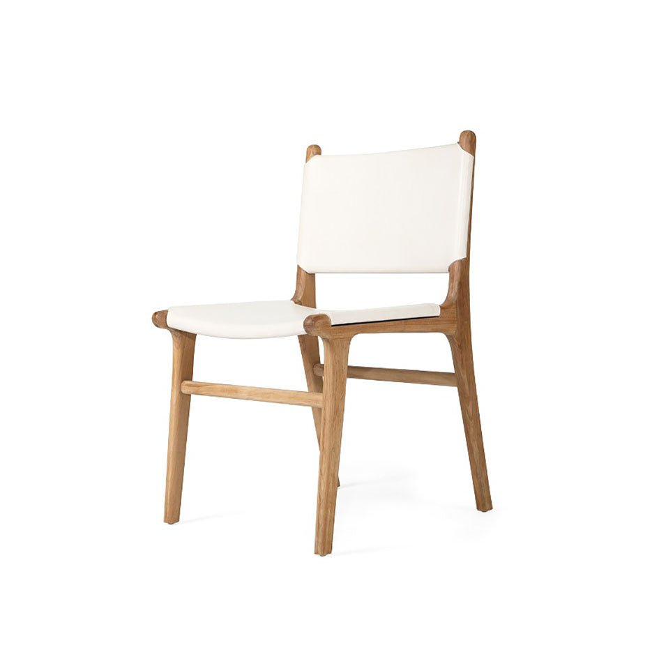 Introducing the Pasadena Dining Chair, where modern design meets timeless elegance. Crafted with a solid teak base and upholstered in luxurious white leather, this chair perfectly complements both Hamptons and contemporary settings. Its comfortable, stylish seating invites extended dining sessions, while its minimalist silhouette ensures it stands as a statement of sophistication.