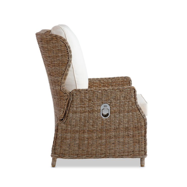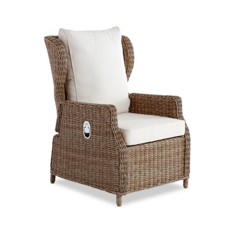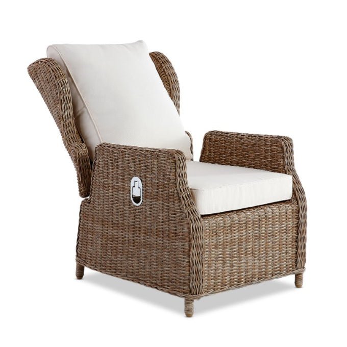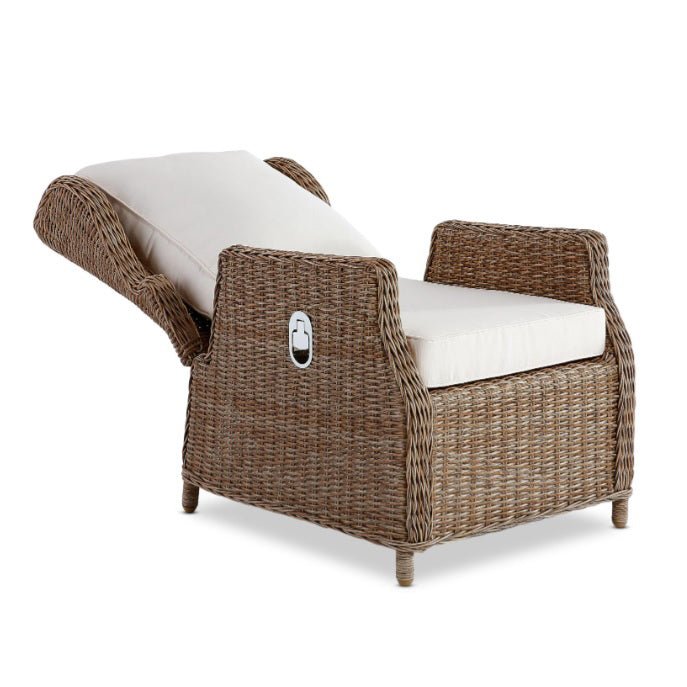Indulge in the ultimate outdoor relaxation experience with our exquisite Ellis Reclining Lounge Chair. Painstakingly crafted with the utmost attention to detail, this chair boasts a sturdy aluminium frame and a sumptuous synthetic weave, exuding an air of opulence and refinement.