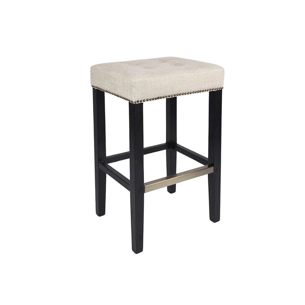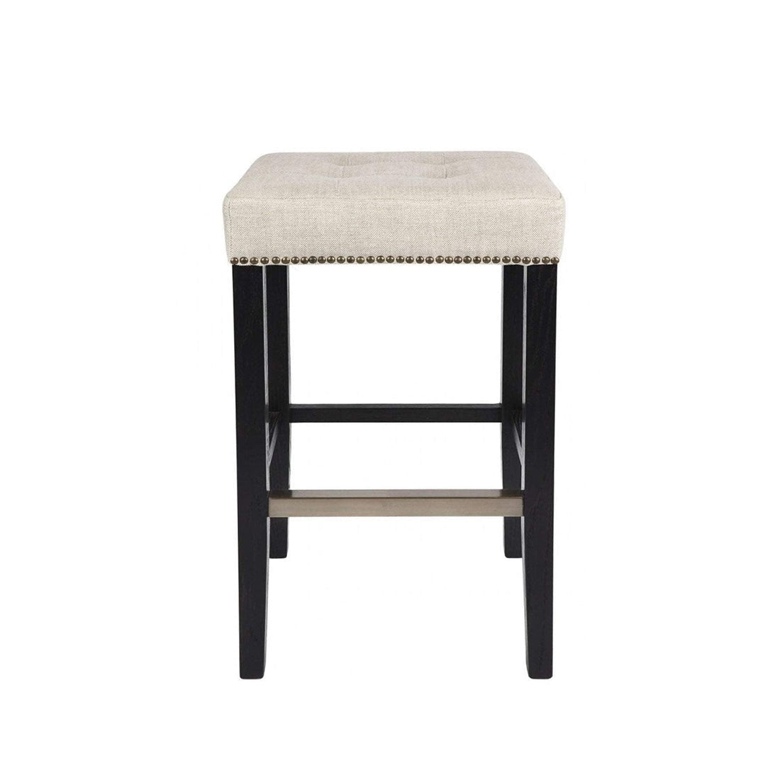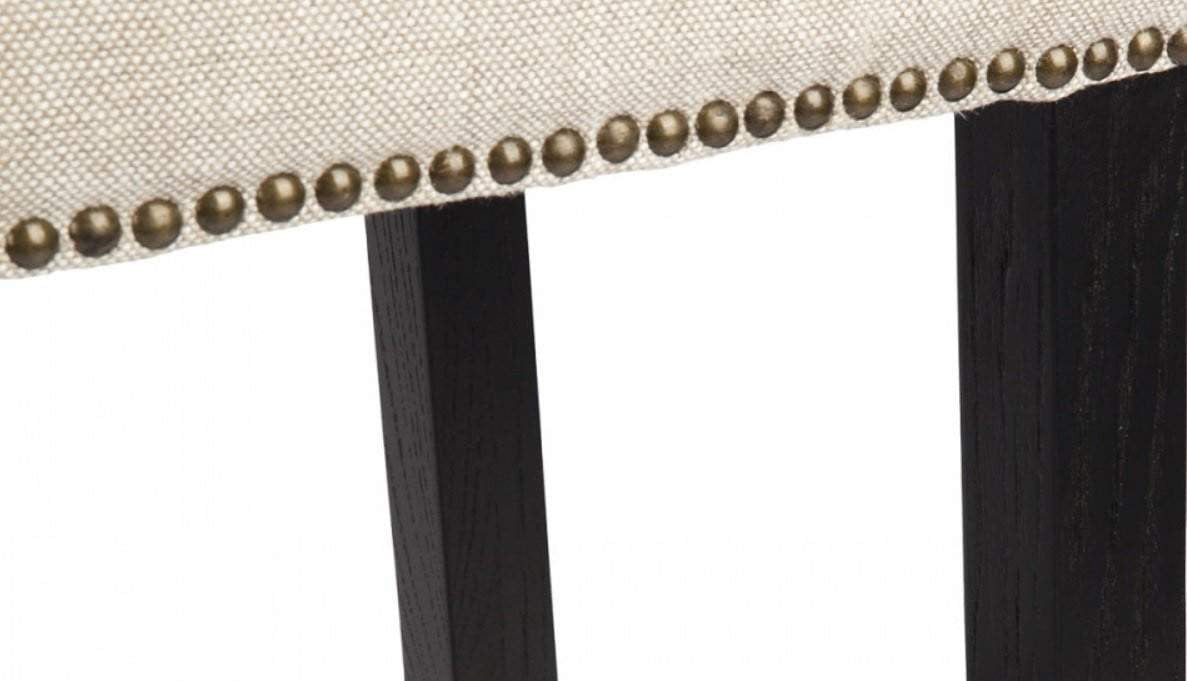 This luxury bar stool stands tall at 76cm on an elegantly tapered solid birch frame in a rich black painted finish. Refined details like the brushed bronze studs and brass finished footrest add subtle glamour while the pure linen upholstered seat in a gorgeous natural texture with tufted detailing adds classic charm.