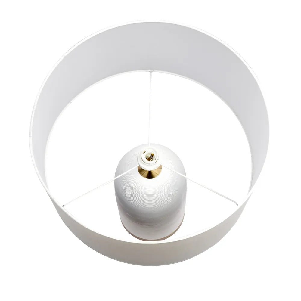Voluptuous curves and a delicately ribbed surface texture create a sense of organic simplicity in the Omaha table lamp. Complimenting any interior, the Omaha table lamp base enjoys a tactile matt white finish and is mounted on a brass finished metal plinth, injecting a hint of glamour to the design. A substantial lamp at 65cm total height, its elegant white linen look drum shade completes the look.