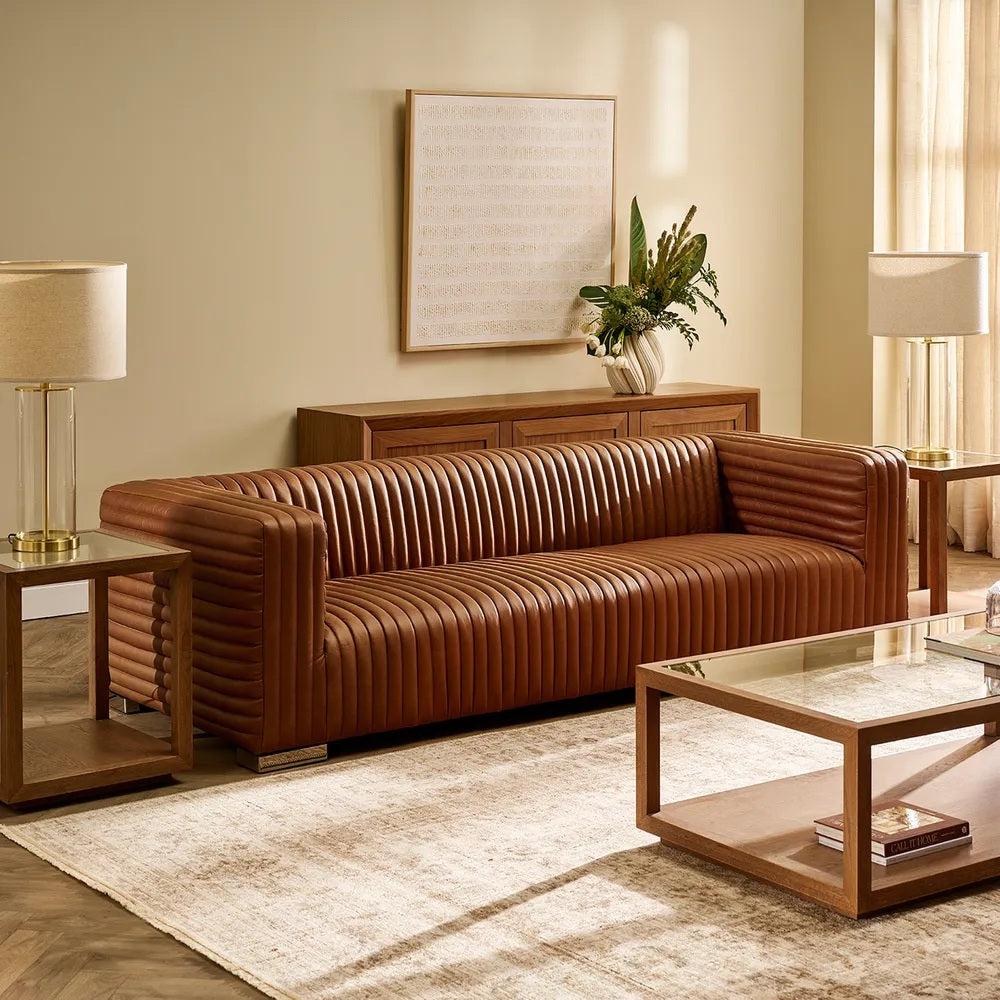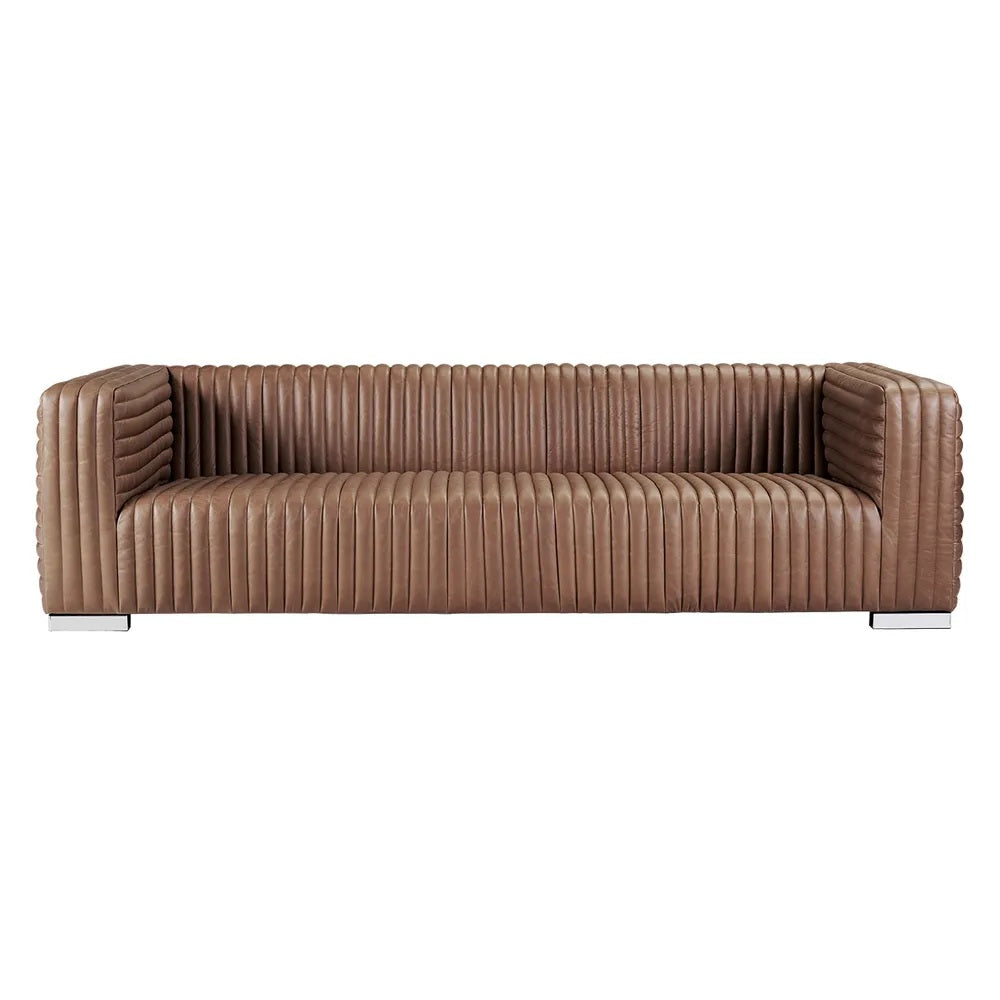 Wrapped in deep, dark brown, top grain cow leather, the Sardinia 3 Seater Sofa's sculpted form and vertical channelling evoke strength, luxury and timeless style. The leather softens with age, gaining character, never losing edge. Generously sized, endlessly refined, and unapologetically masculine!