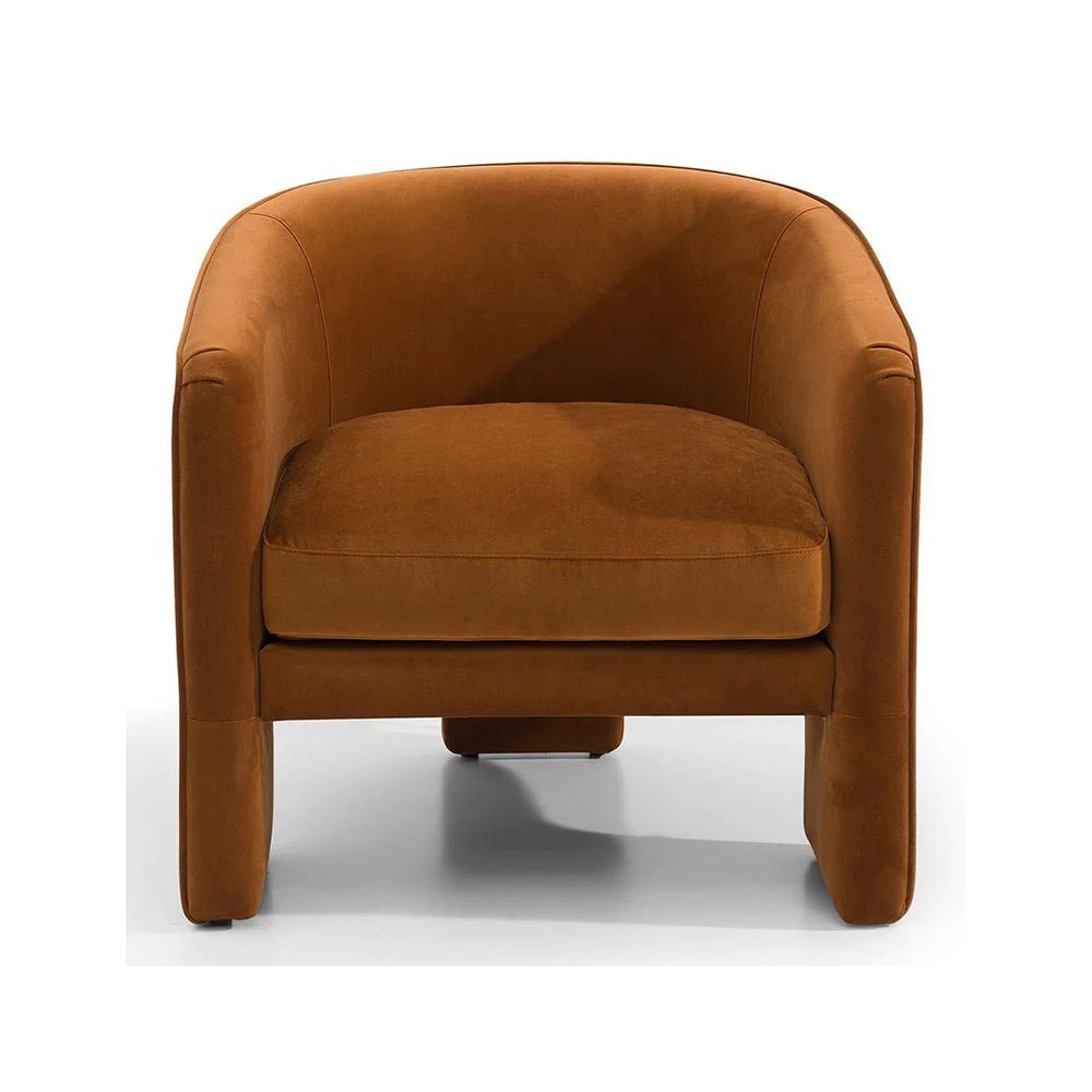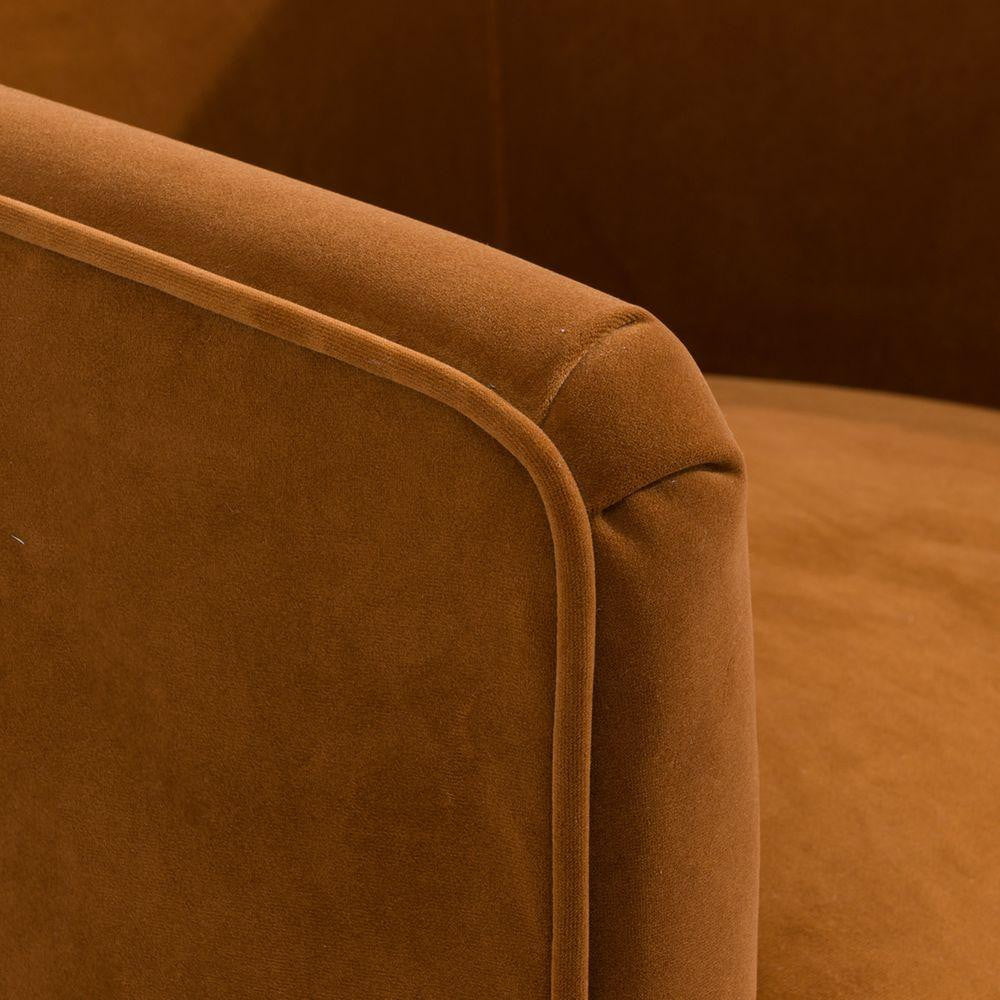 Boasting a curvaceous silhouette that resonates with ongoing trends, the Koko arm chair, upholstered in a luscious caramel velvet, features fully upholstered tripod legs and detailed piping. Inspired by mid-century modern design, it’s contemporary curves and sleek tailored finish infuses any interior with enviable style.