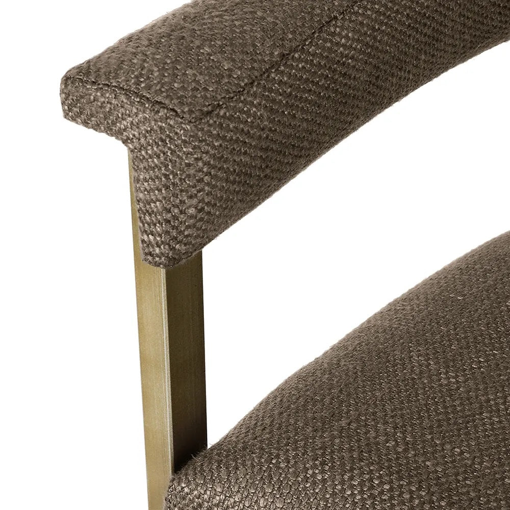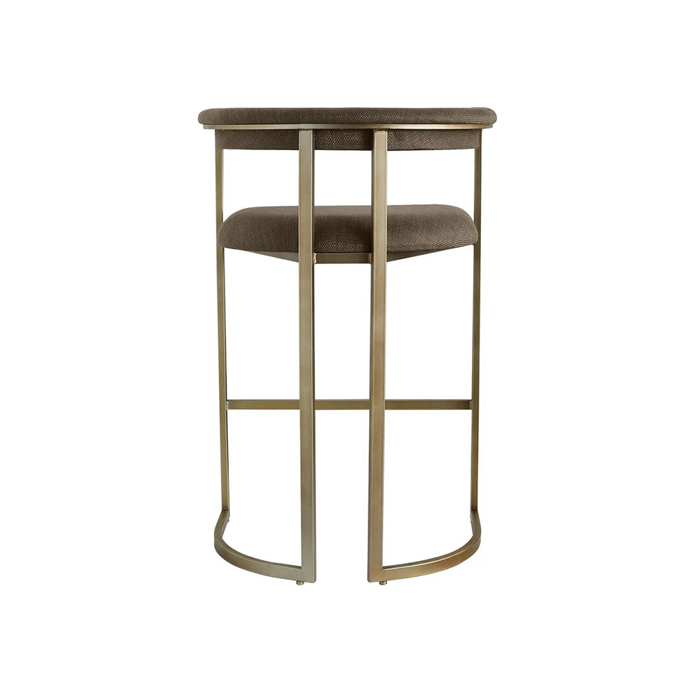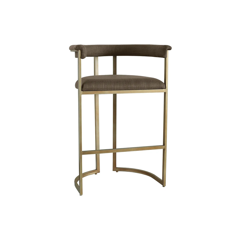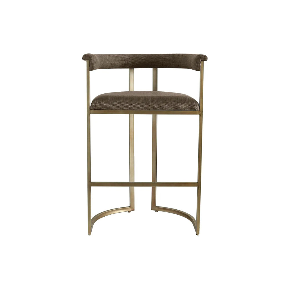 Impeccably proportioned for kitchen islands and counter-height settings, the Dino Kitchen Stool makes a confident statement in modern interiors. Wrapped in rich chocolate linen, its tailored silhouette—defined by a softly curved backrest and plush cushioned seat—delivers comfort with unmistakable attitude. The antique brass–finished frame provides a sharp, elegant contrast, grounding the design with strength, polish, and enduring sophistication—also available as a taller bar stool.
