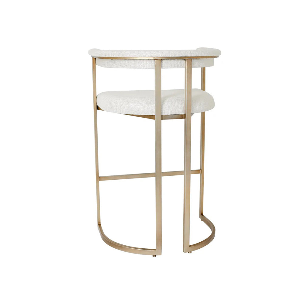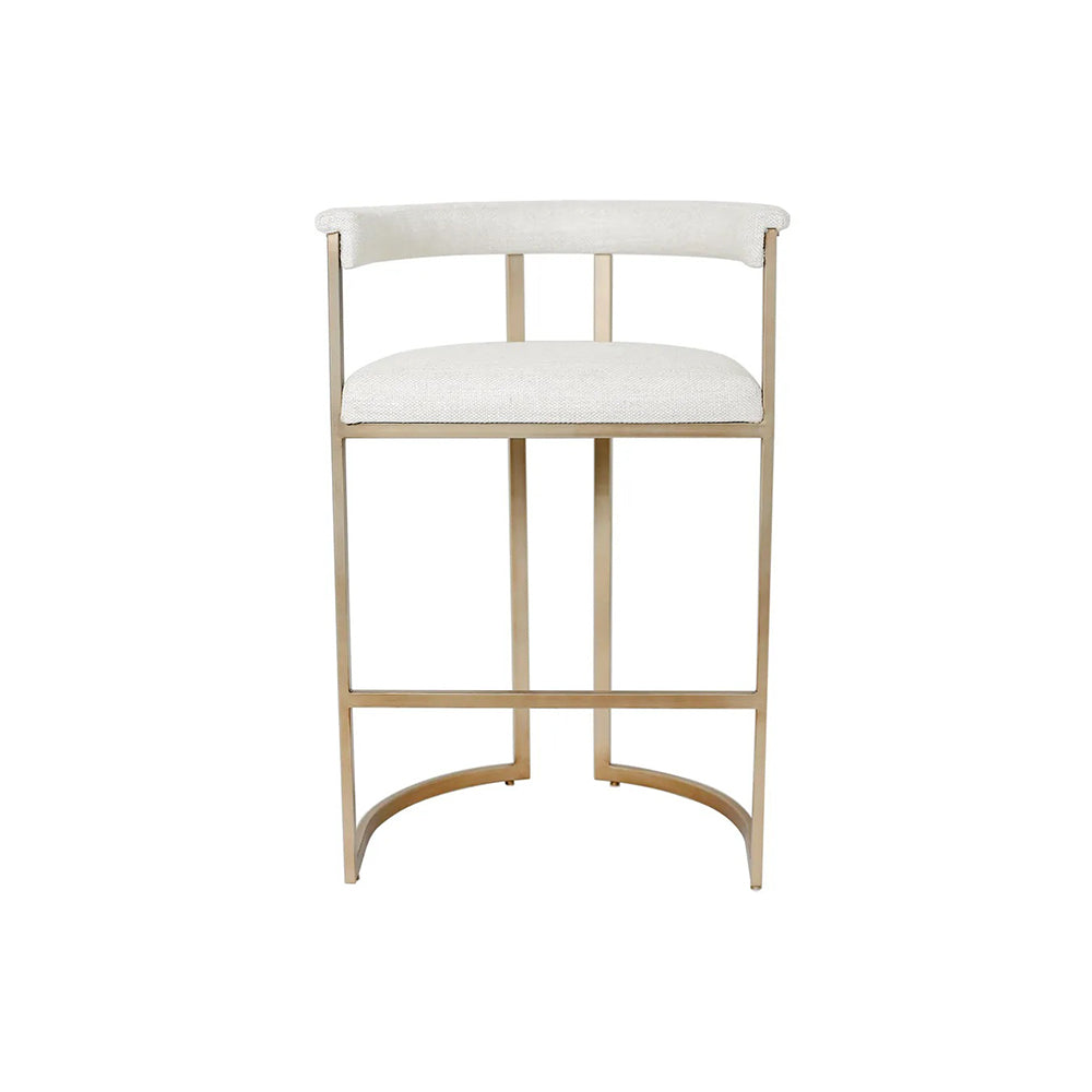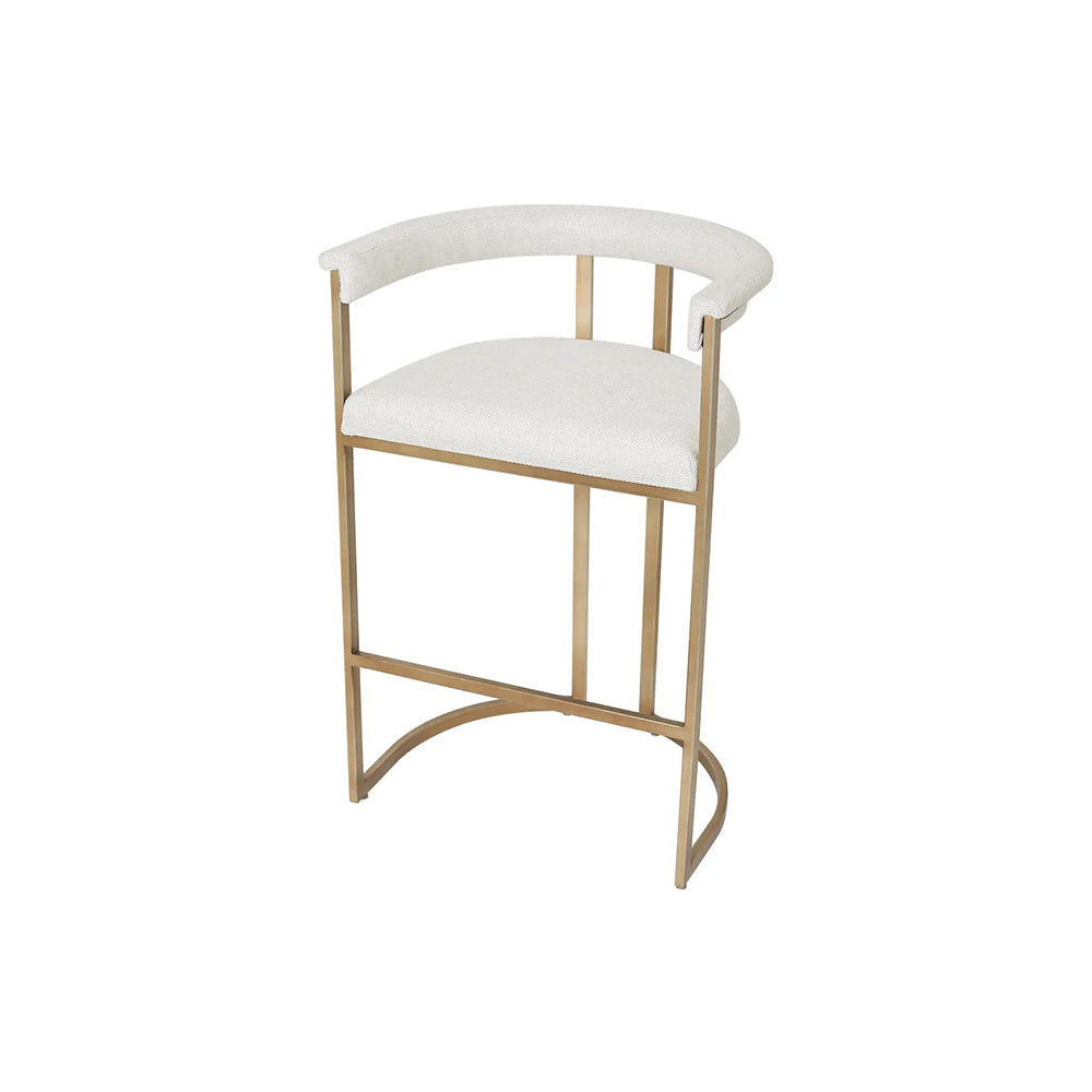 Perfectly scaled for kitchen islands and counter-height settings, the Dino Kitchen Stool brings a refined sense of modern elegance to any space. Upholstered in natural linen, it offers a beautifully balanced look that feels both polished and inviting. The softly curved, tailored backrest and generously cushioned seat are designed for lasting comfort, while the antique brass–finished frame adds a layer of sophistication, strength, and stability—also available as a taller bar stool.