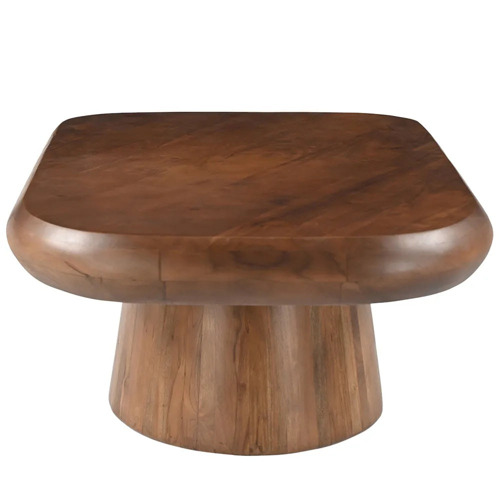 The Haimes Coffee Table is crafted from solid acacia wood, defined by a curved, pill-shaped top and a bold pedestal base. Sculptural yet architectural, its rich stained finish adds depth and modern sophistication, creating a confident centrepiece that balances statement design with everyday function.