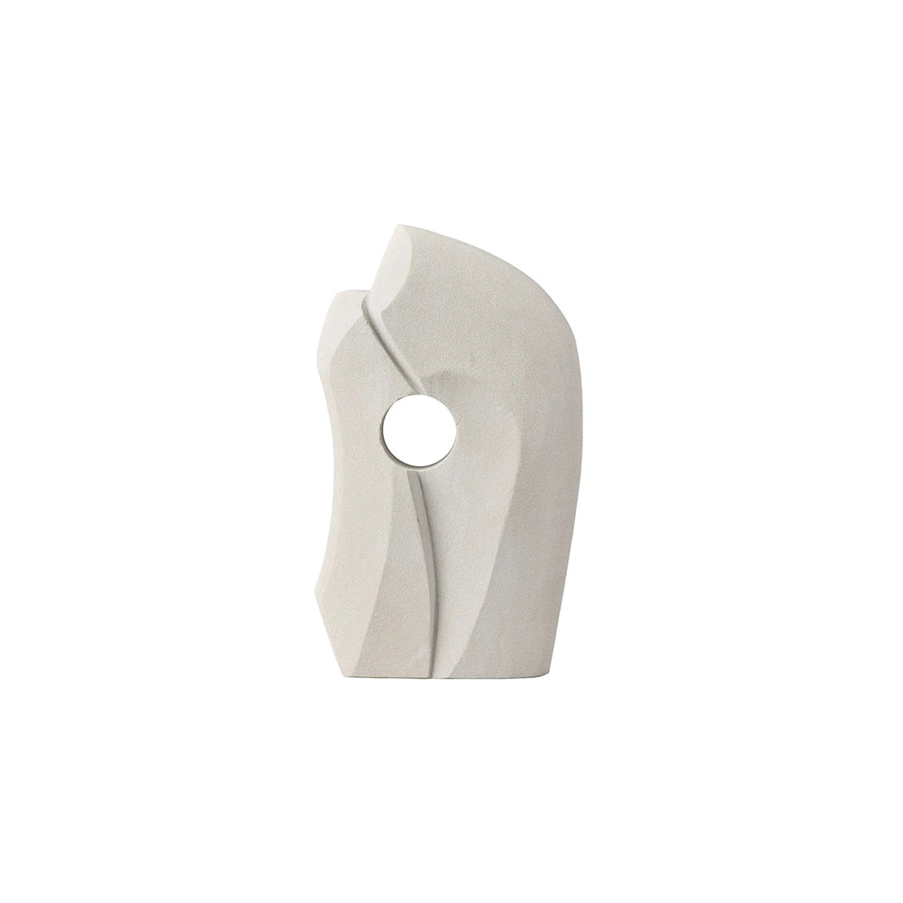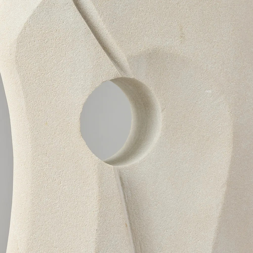 The Faye Sandstone Sculpture adds bold yet refined character to contemporary interiors. Crafted from beige sandstone, its abstract curved form and central cut-out create depth and sculptural interest. Ideal as a standalone accent on consoles, shelves, or coffee tables, it brings organic texture and modern artistry to minimalist or curated spaces.