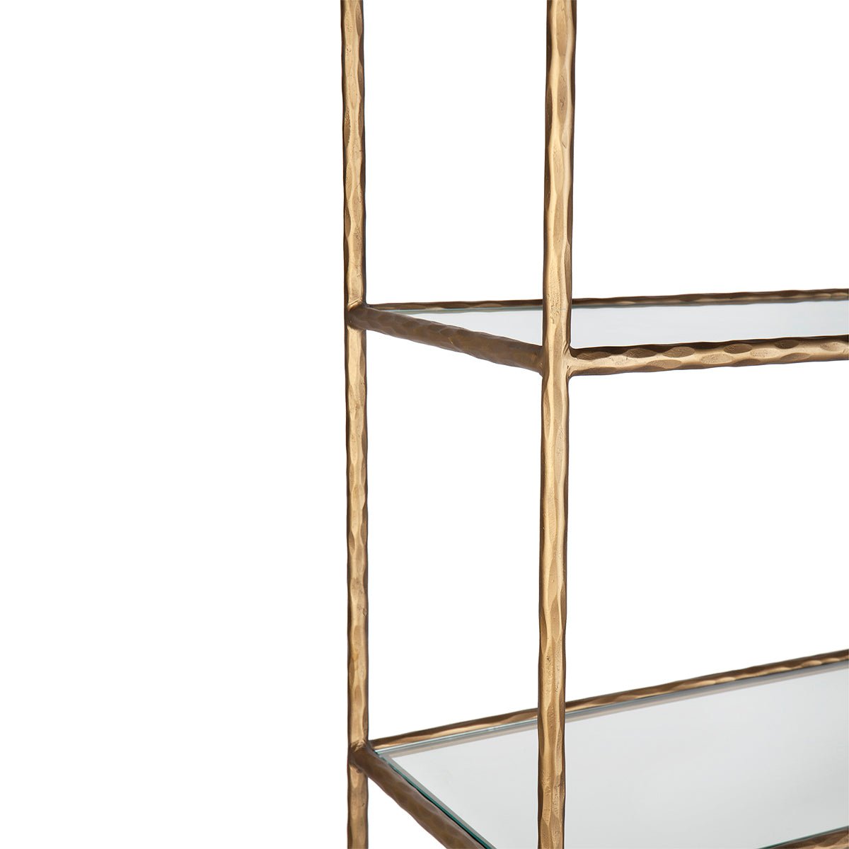 Timelessly elegant, our Heston collection merges rustic sensibility of a hand-forged solid iron frame with a rich counterpoint of clear toughened floating glass shelves. The fine and elegant silhouette of this design allows for practical adaptability in creating a sense of air in your space. Each piece is individually handcrafted by artisans to reveal an imperfect and organic texture.