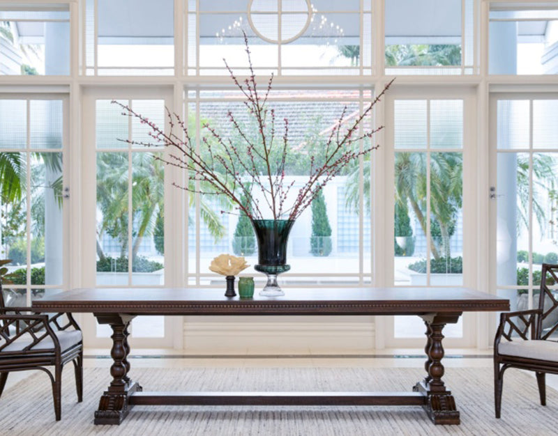 The Margaret Dining Table is a statement of craftsmanship, hand-carved and meticulously detailed for a truly ornate finish. Expertly crafted from premium American Oak, it features a stunning hand-laid parquetry veneer top set upon a solid oak frame for strength and beauty. The rich Coffee Bean stain enhances its natural grain, while the refined detailing highlights timeless artistry, creating a dining table that embodies sophistication, heritage, and enduring elegance.