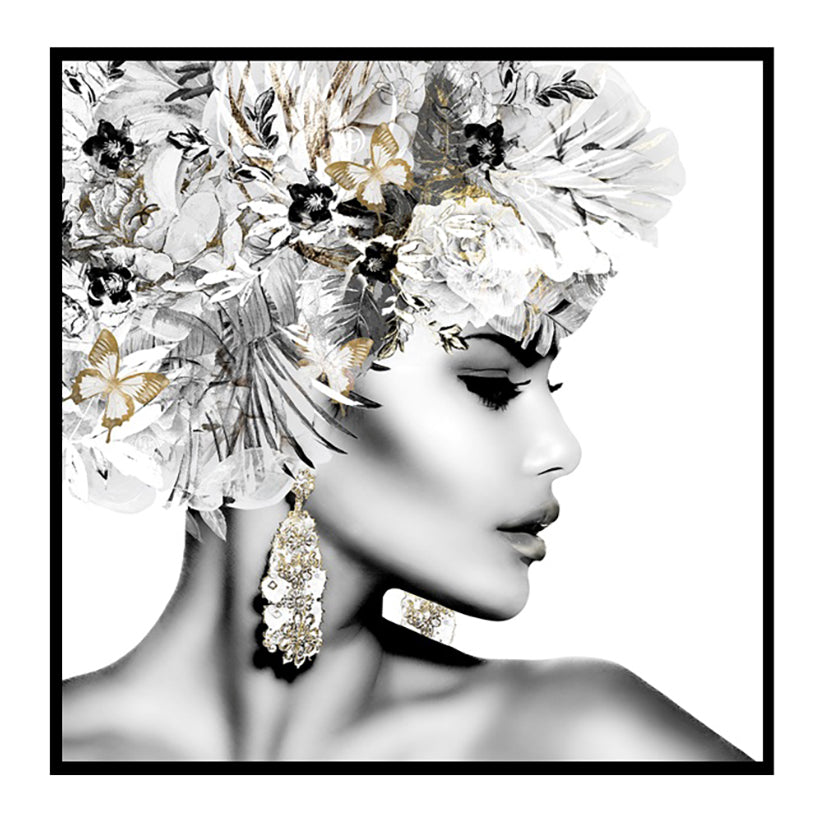 This striking monochrome beauty, crowned in florals and golden butterflies, is elegance redefined. and who doesn't love a kiss of fashion on their walls!
