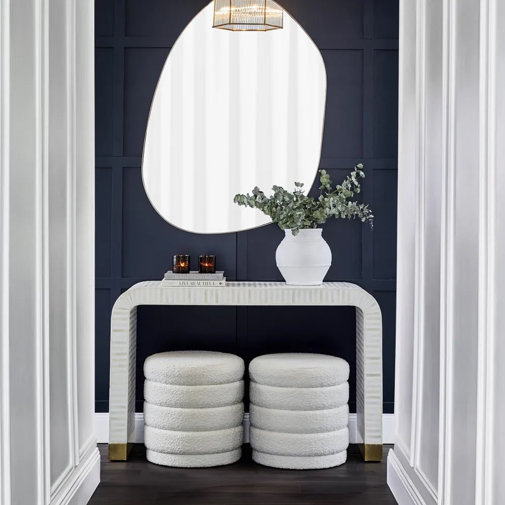 Upholstered in a gorgeously tactile white boucle fabric, the perfectly proportioned Demi stool lends a sense of sophistication to any space. Designed with an effortlessly chic cosmopolitan mood in mind, the panelling detail of the Demi stool enhances its textural quality and adds to its natural, organic feel.
