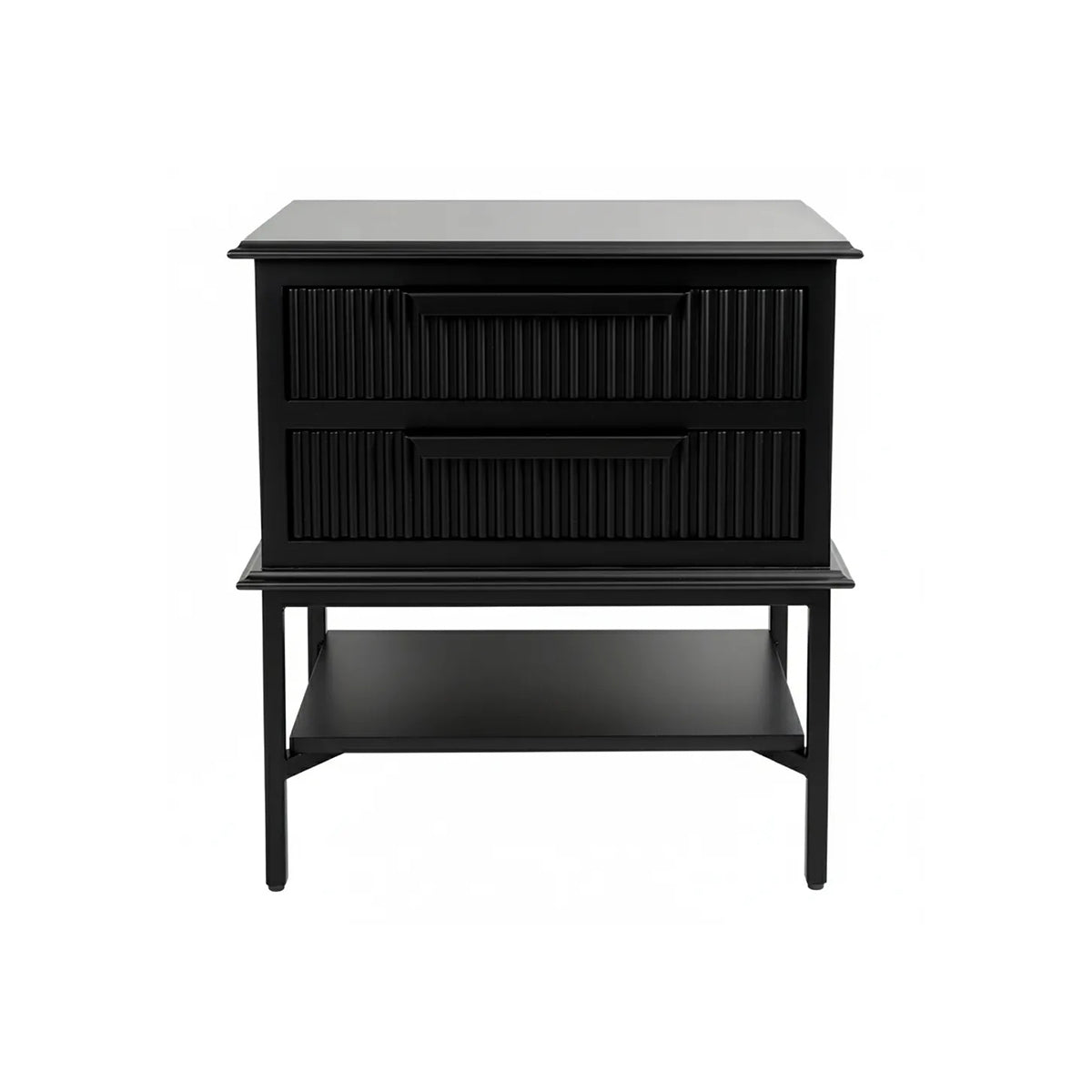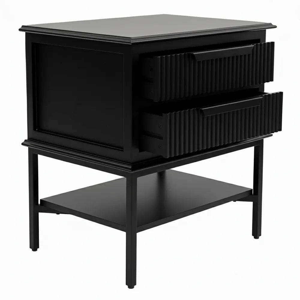 The Ripple Bedside Table in small black strikes the perfect balance between sculptural beauty and everyday function. Fluted drawer fronts and sleek, streamlined handles create a sense of quiet sophistication, while the spacious open shelf provides both style and practicality. Finished in a fully colour-matched design, available in All Black or All White, the Ripple bedside table exudes a cohesive, monochrome elegance that seamlessly complements contemporary interiors. A versatile statement piece, thoughtfully designed to bring understated luxury and balance to any modern bedroom. A true statement piece that commands attention, its bold design is both sophisticated and unapologetically chic. Available in two sizes.
