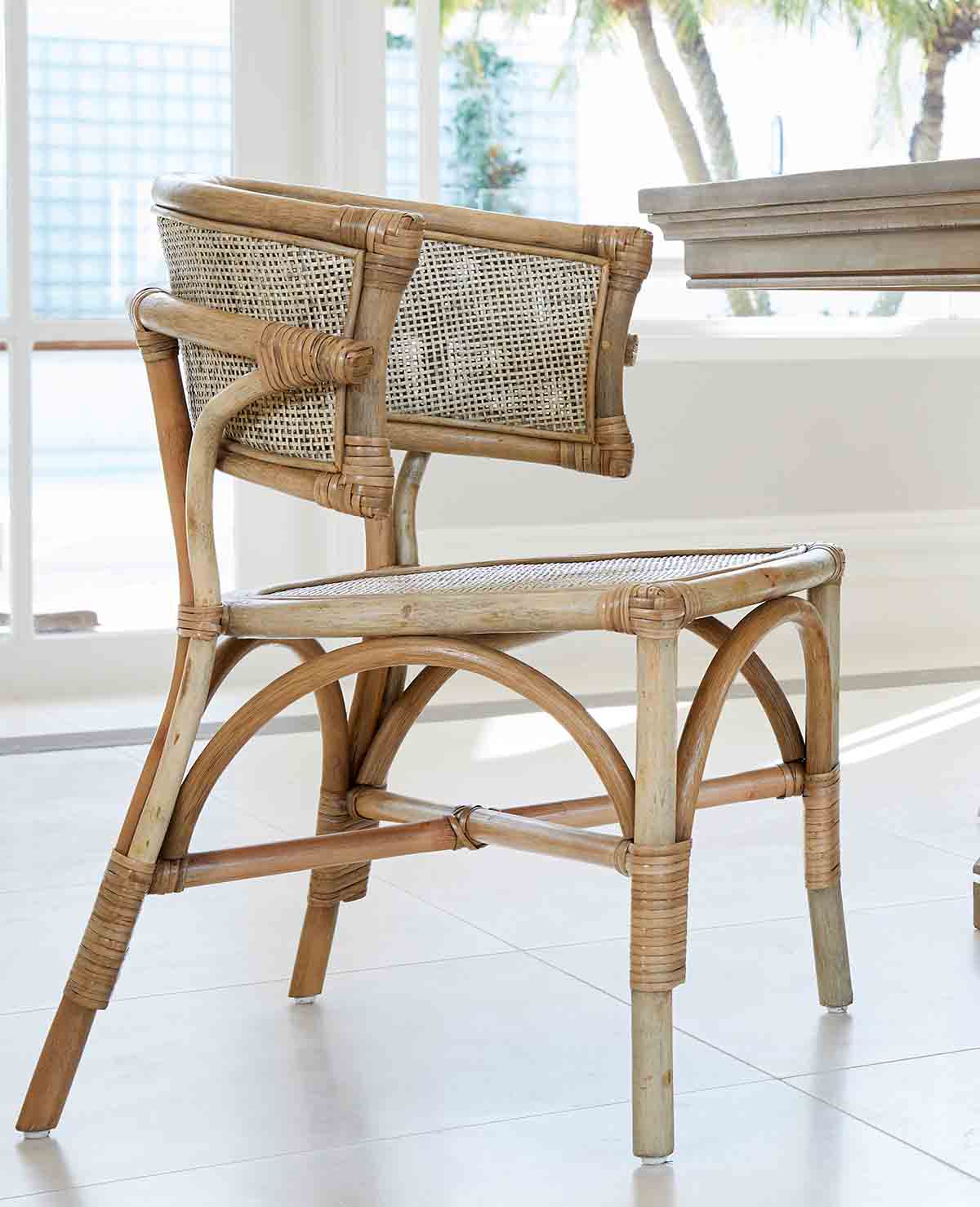 Expertly handcrafted from plantation-sourced rattan, each chair is individually finished by hand in your choice of our signature Mud Grey or rich Coffee Bean colors. This meticulous craftsmanship ensures a unique character in every piece.