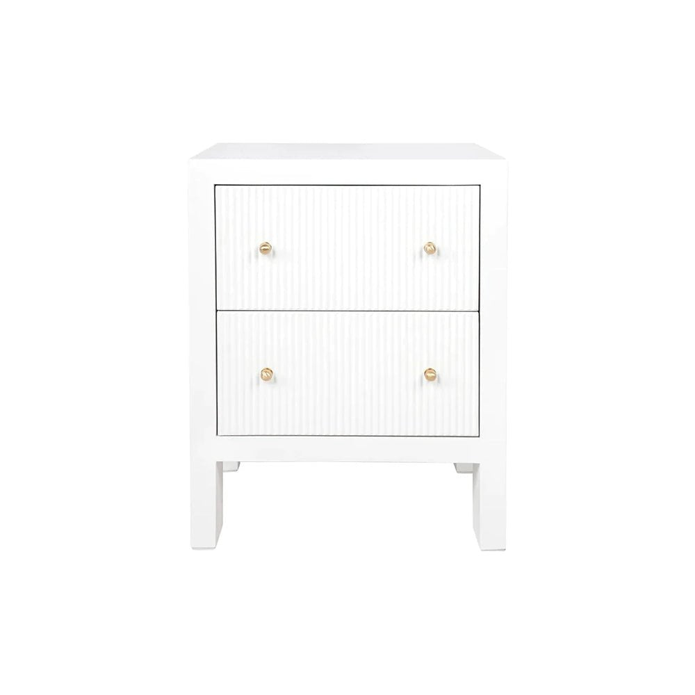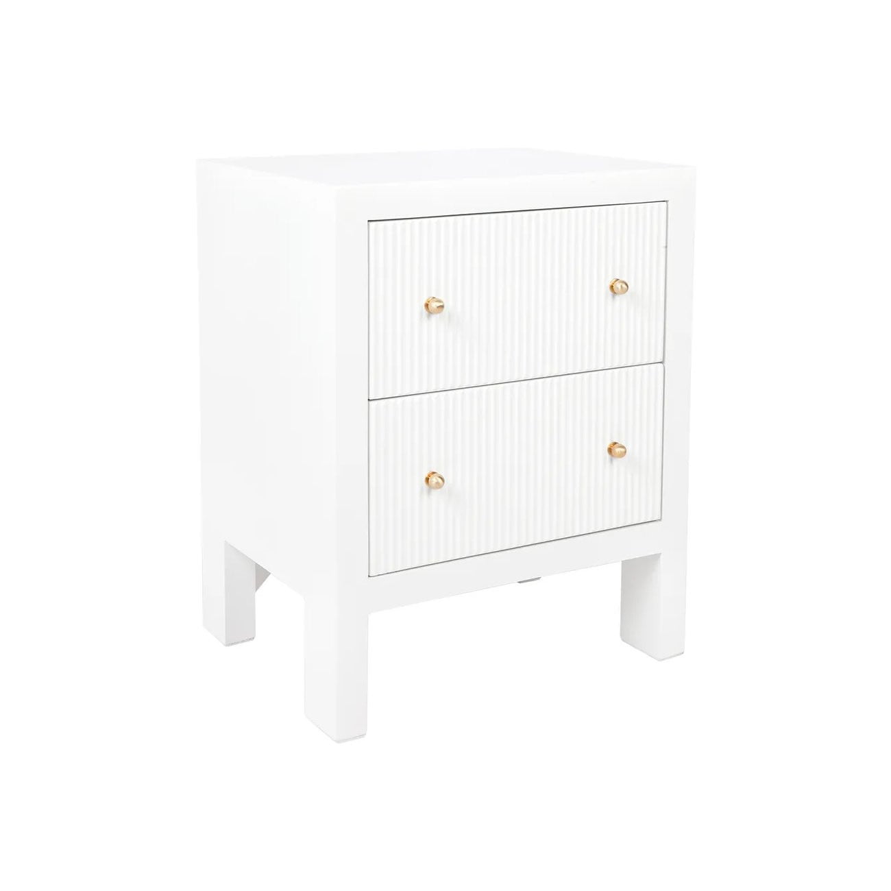Enveloping your space with an airy feel, our Adele small bedside table in white is all about the details from the fluted drawer fronts to brushed gold handles. Accentuating your bedroom with its fresh colour and textural finish, scaled for both maximum storage and design presence.