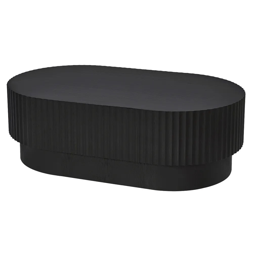 Elegant and quietly modern, the Langham Oval Coffee Table in black speaks in whispers, not shouts. Soft curves, refined fluting, and subtle texture create effortless sophistication. A serene neutral designed to elevate modern living rooms with timeless restraint and understated grace.