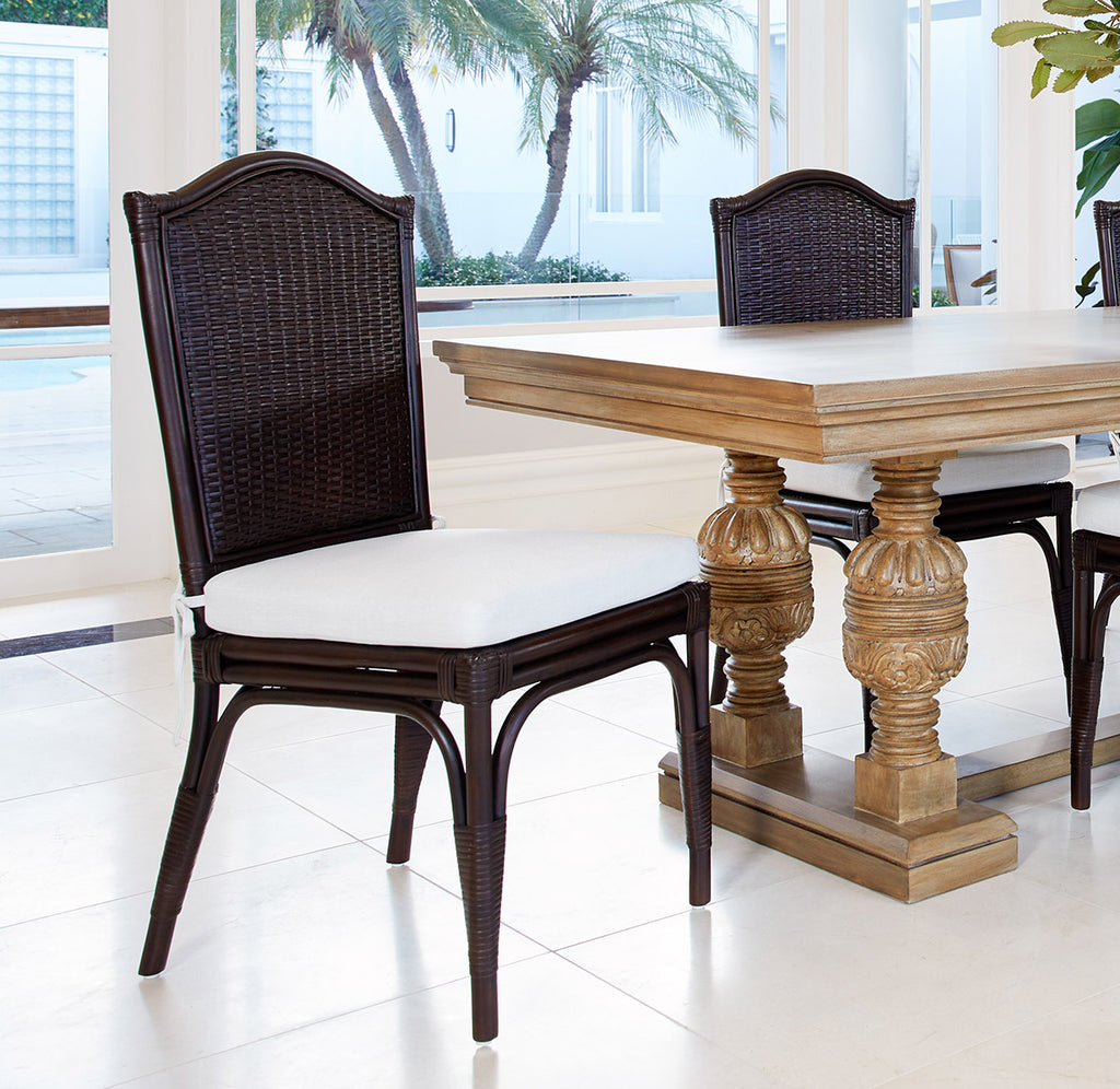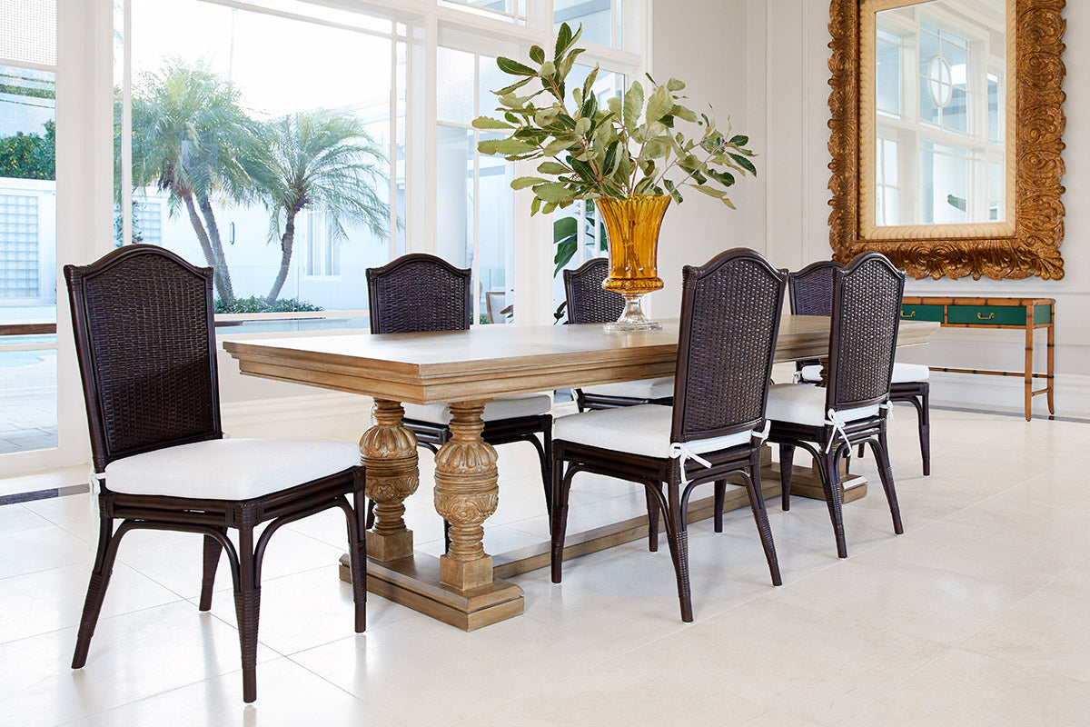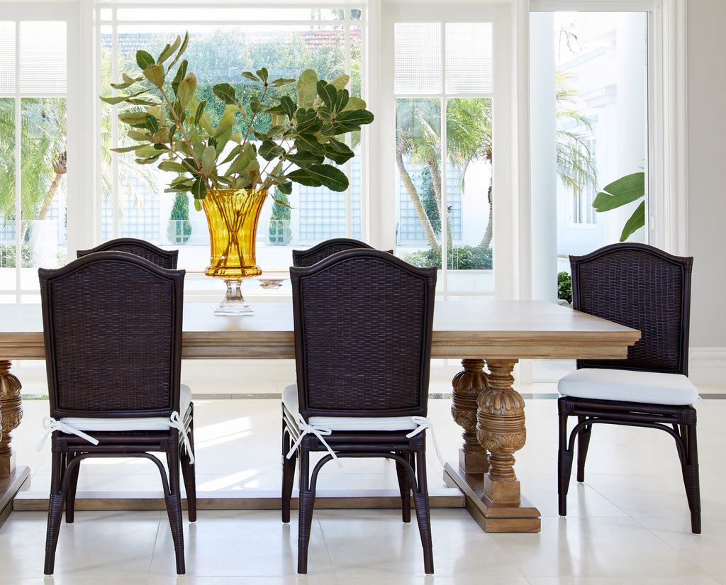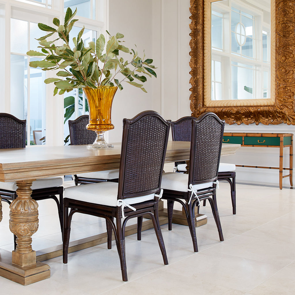 Experience the harmony of style, sustainability, and timeless appeal with the Adeline Scalloped back Dining Chair in coffee bean. The Adeline Dining Chair seamlessly blends timeless English-inspired design with the natural charm of handwoven rattan. Crafted from sustainably sourced, old-growth plantation rattan, each chair is individually handcrafted and finished in two colours, ensuring a unique and authentic touch.