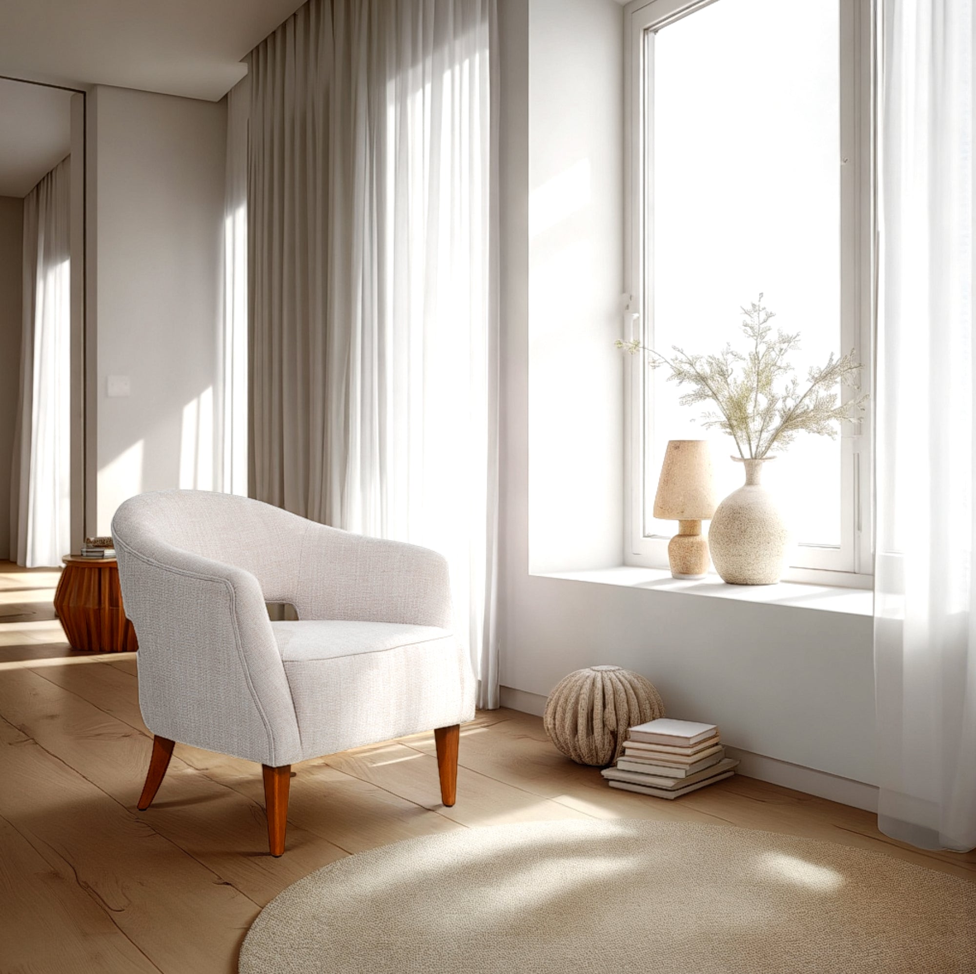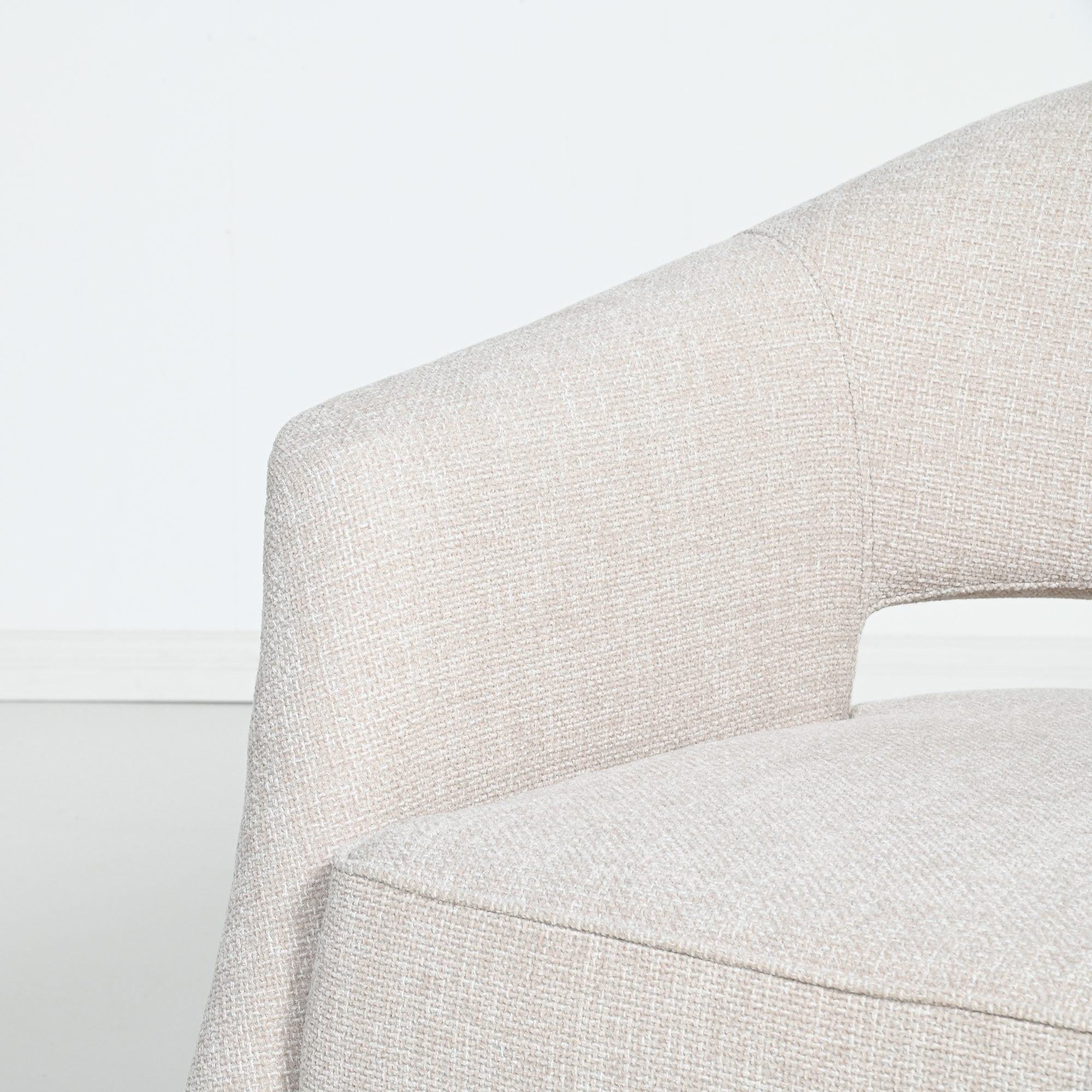 The Malta Armchair is where precision meets indulgence, compact in form yet generous in comfort. Draped in premium woven fabric and grounded by sculpted wood legs, it’s a study in effortless elegance. In refined beige, this armchair doesn’t just conserve space, it elevates it.