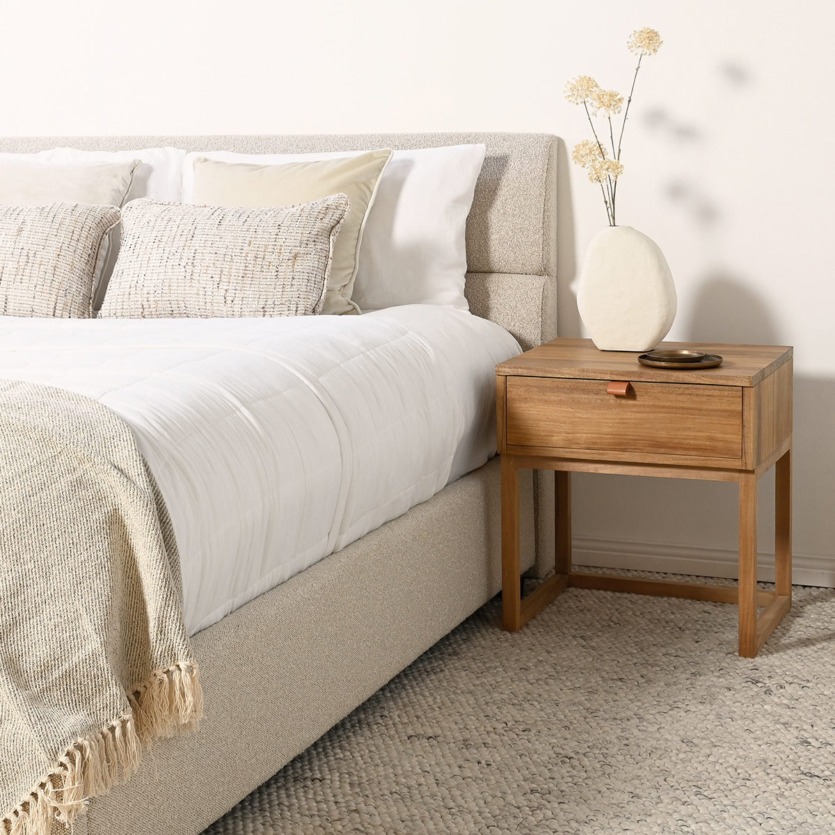 Experience timeless sophistication with the Monroe Oatmeal Headboard. Featuring a sleek, lowered design, it offers a striking contemporary aesthetic. Luxuriously padded for ultimate comfort, the headboard is upholstered in textured oatmeal fabric, blending warmth and depth with effortless elegance. The natural oatmeal hue adds richness and sophistication, making it a statement piece that elevates any bedroom.