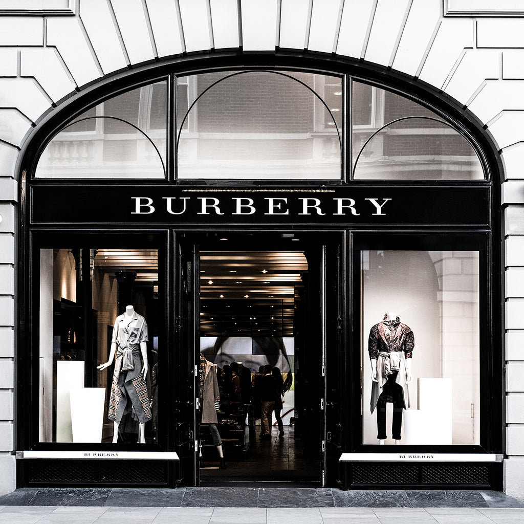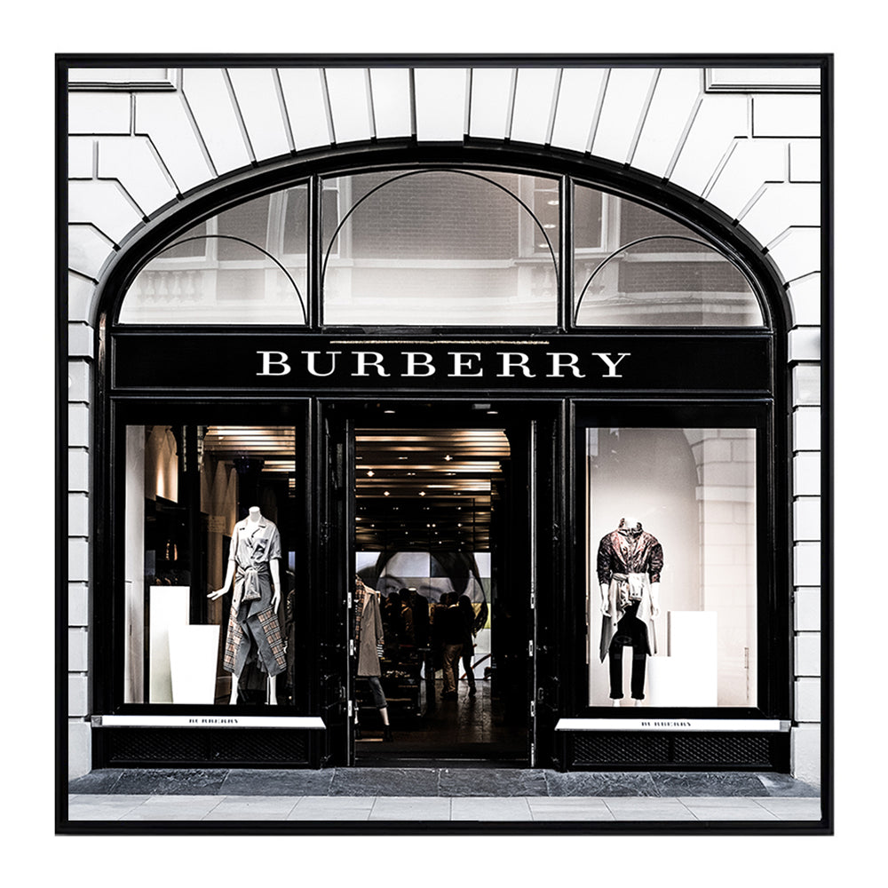 Capture the timeless allure of British fashion with this striking high fashion storefront print. A monochrome tribute to luxury and heritage, perfect for style-savvy interiors.