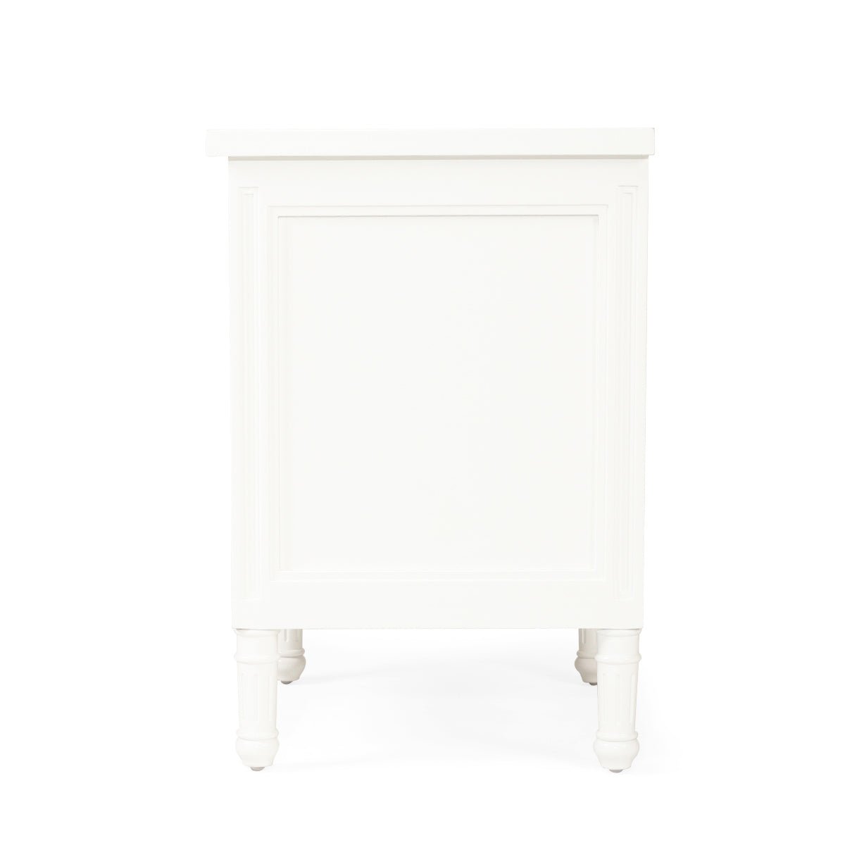 Finished in a glossy white, the bedside table radiates sophistication and charm. This beautiful bedside table offers a harmonious blend of traditional design with a nod to coastal elegance.