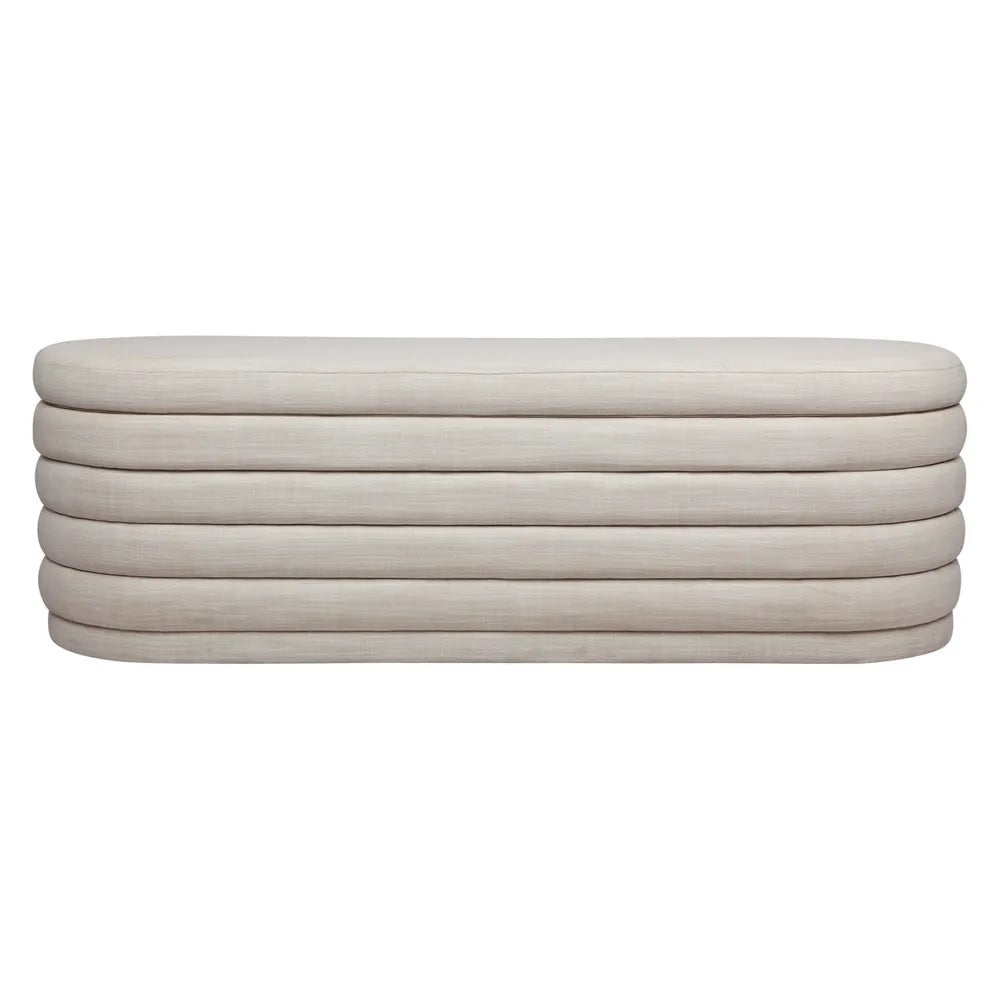 Upholstered in elegant off-white linen, the Demi storage bench ottoman lends a sense of sophistication to any space. Designed with an effortlessly chic cosmopolitan mood in mind, the panelling detail of the Demi storage bench ottoman enhances its textural quality and adds to its natural organic feel.